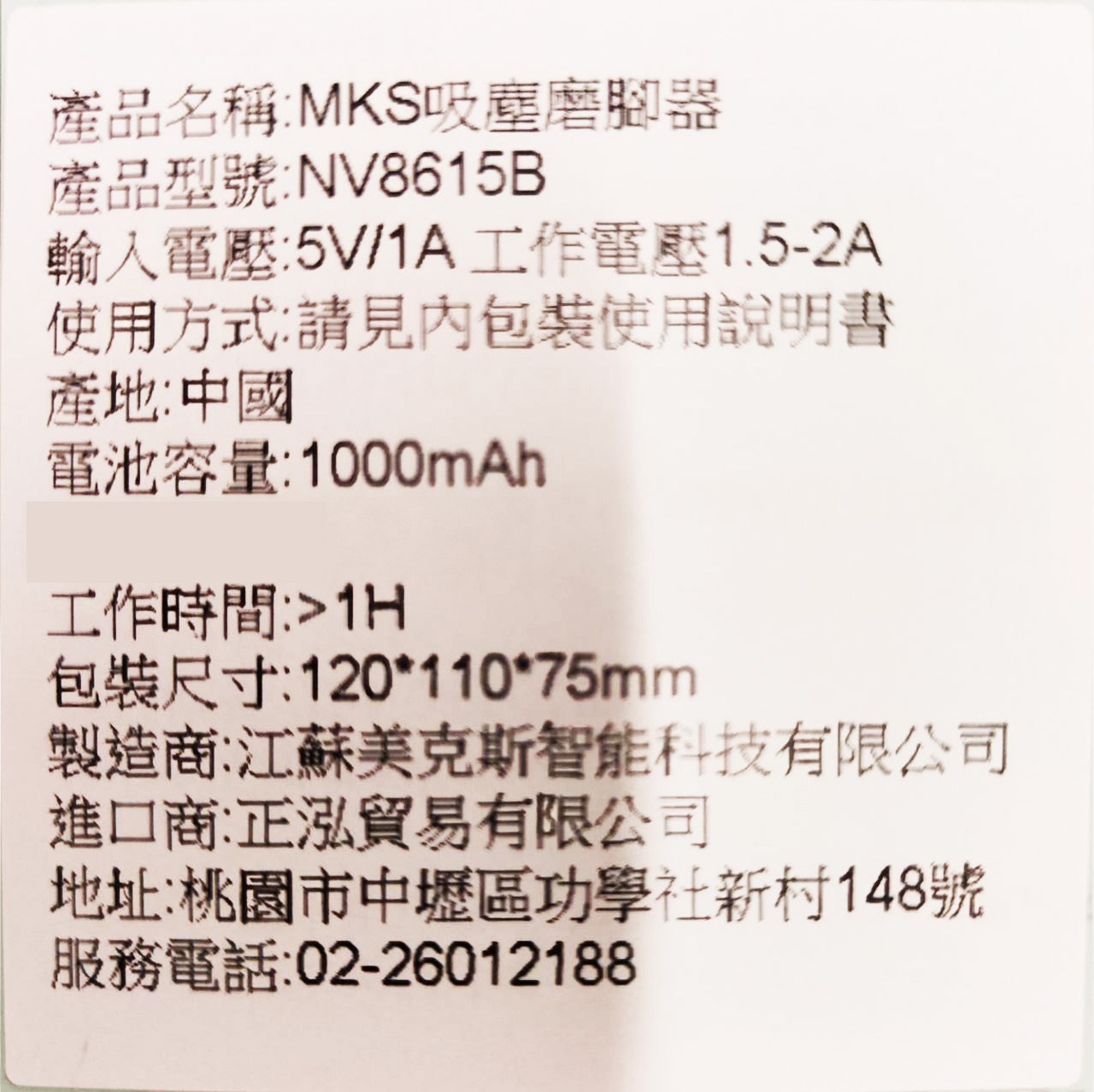 MKS 美克斯 吸塵磨腳器, NV8615B, 白色