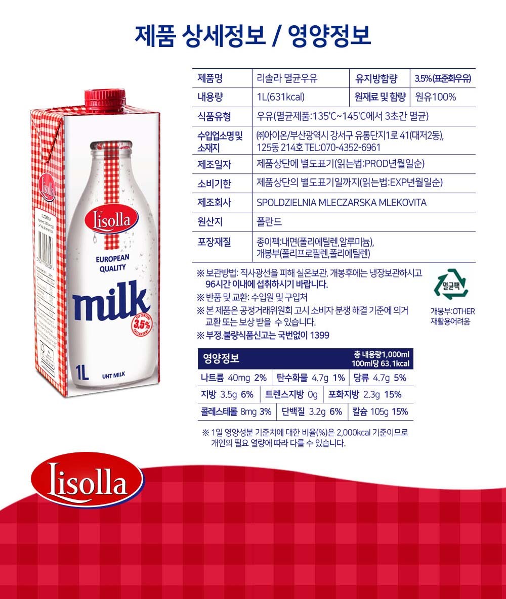 MLEKOVITA Lisolla保久乳,來自波蘭的優質乳品,採用UHT超高溫瞬間滅菌技術,完整保留牛奶的營養成分與香醇風味。這款保久乳不需冷藏,方便儲存與攜帶,隨時隨地都能享受濃郁的牛奶。每包含有豐富的蛋白質和鈣質,有助於維持骨骼健康,適合全家大小飲用。無論是早餐搭配穀物,或是下午茶點心,Lisolla保久乳都是您的理想選擇。讓您輕鬆享受來自歐洲的優質乳品,體驗香醇柔滑的口感。