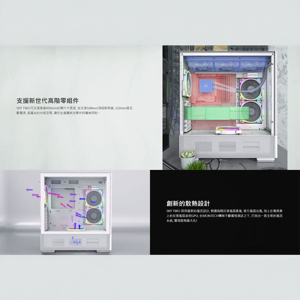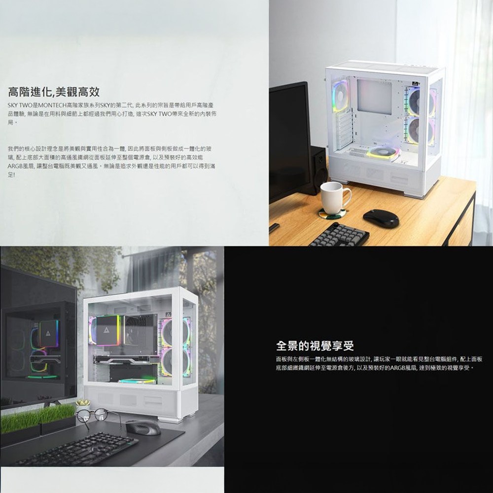 - MONTECH君主SKY TWO機殼,簡約設計,打造出眾的白色時尚風格。