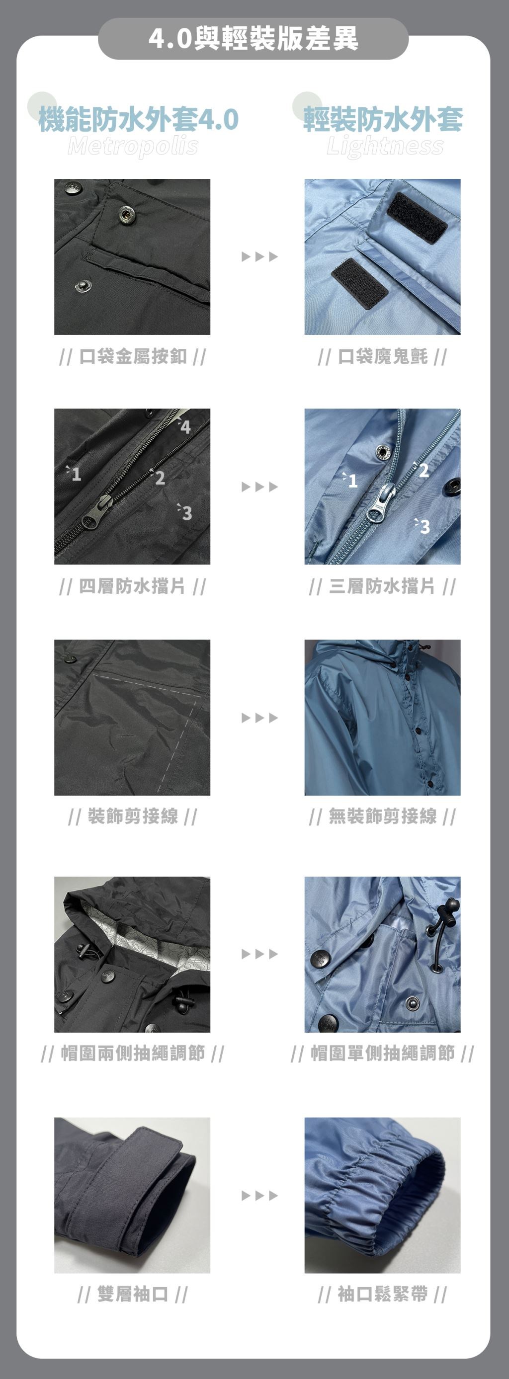 - 具備防水功能,有效阻擋雨水滲入,保持身體乾爽舒適。