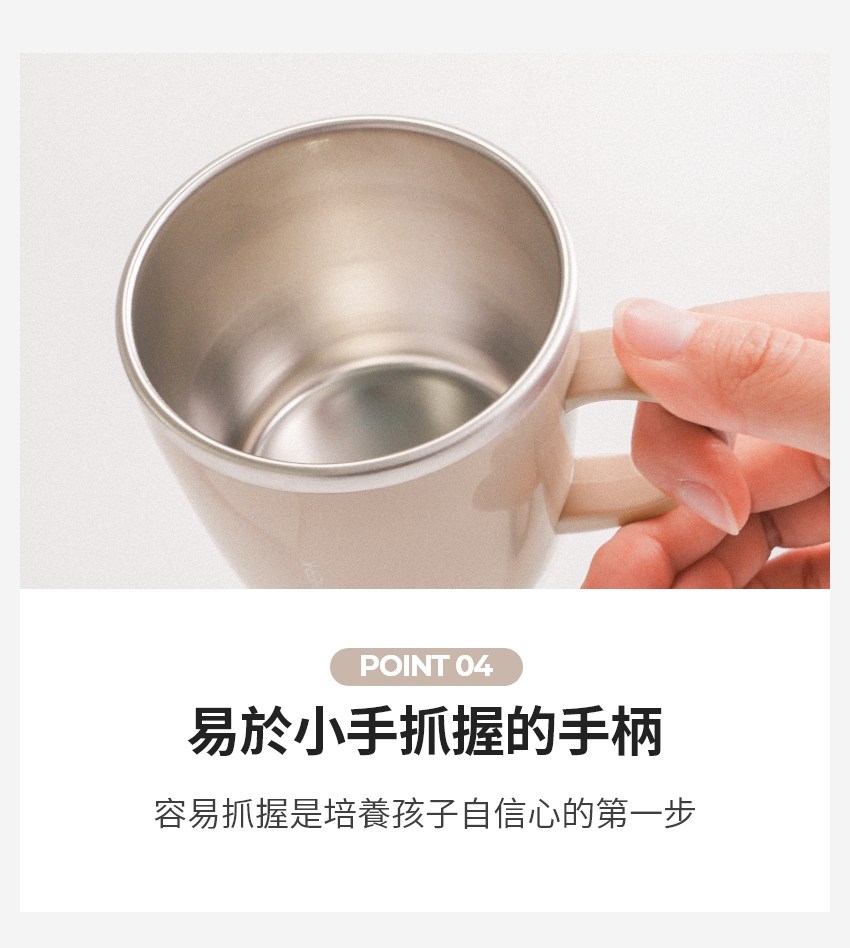 - 圓潤易握的手柄,符合人體工學設計,讓孩子輕鬆抓握,培養獨立自主的飲水能力。