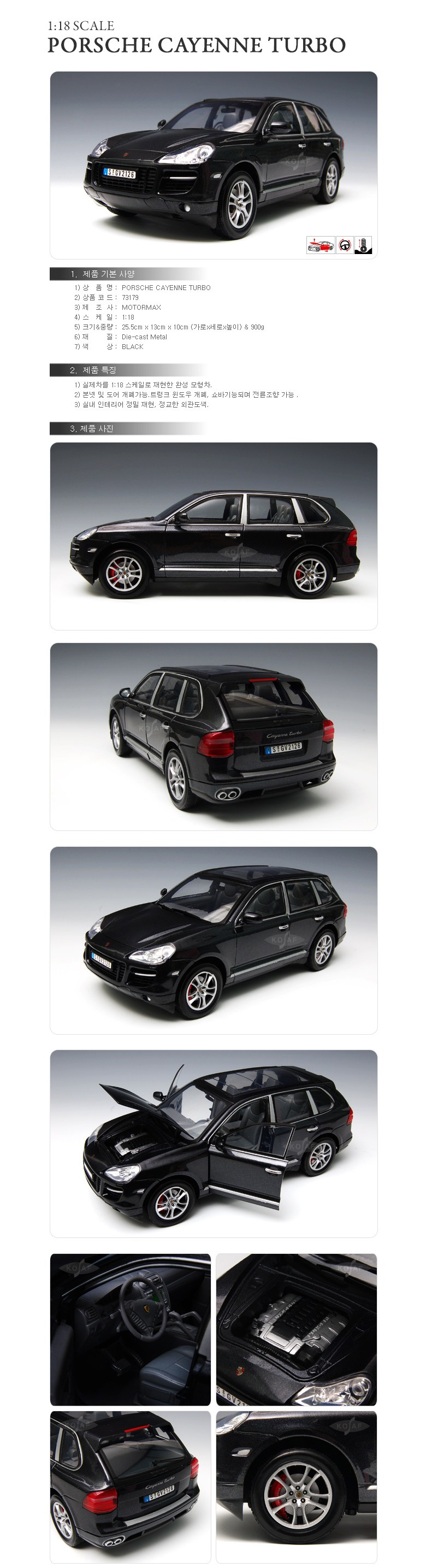 MOTOR MAX 1/18 保時捷卡宴 Turbo 塑料模型車黑色, 1個