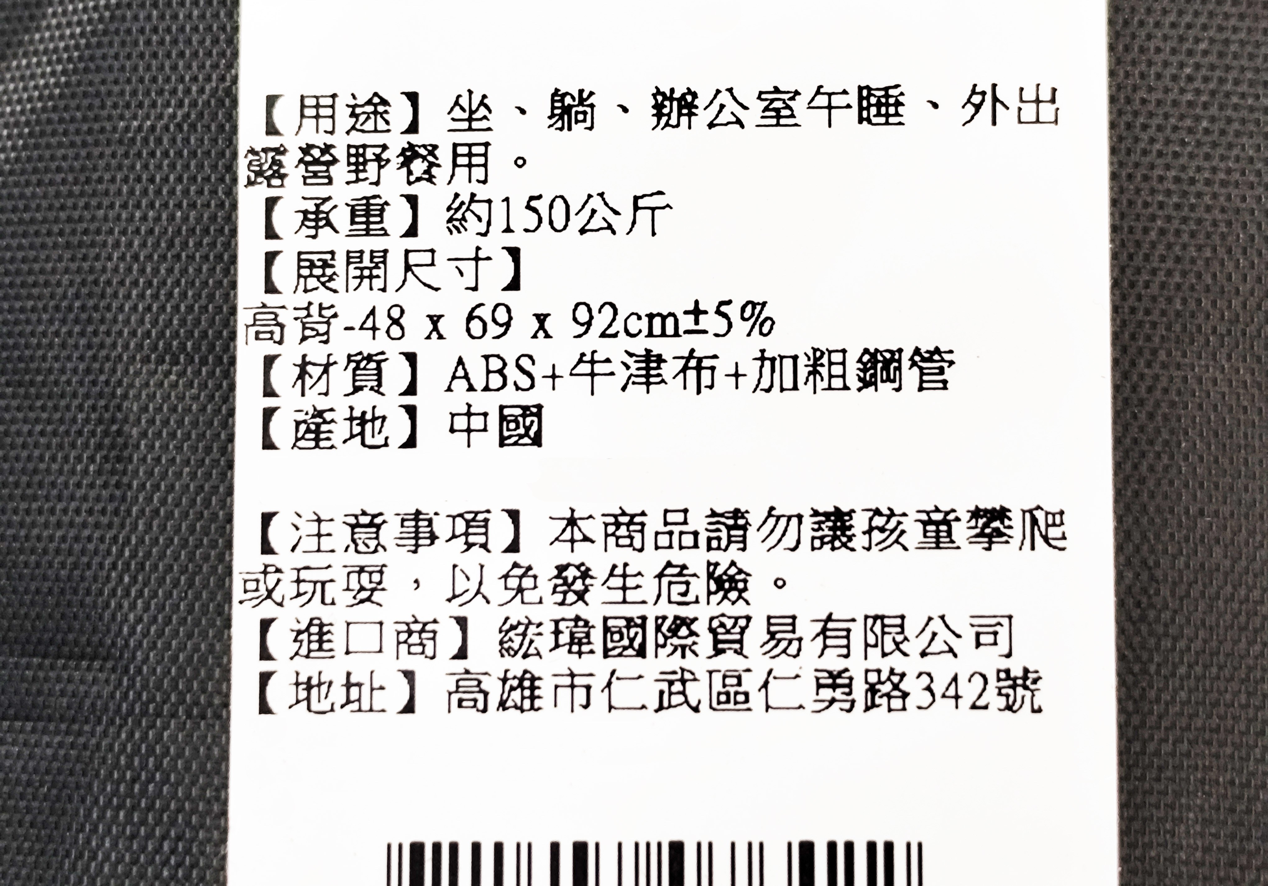 - 享受極致舒適,高背設計完整支撐您的背部,讓您在戶外也能放鬆身心。