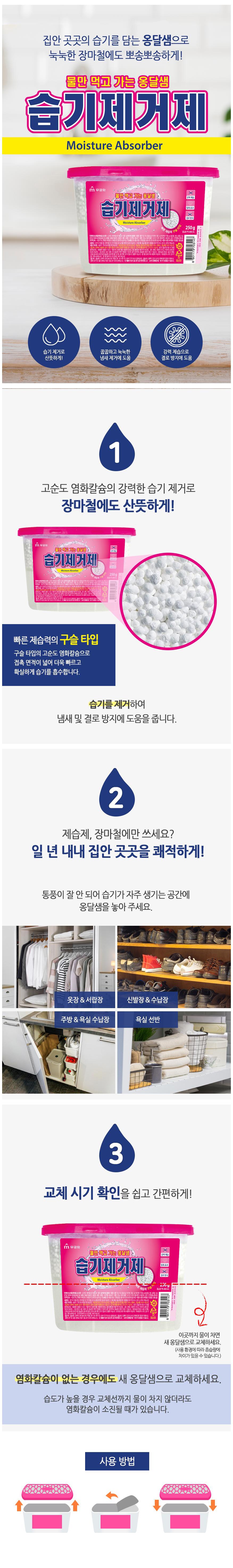 MUGUNGHWA 無窮花 吃完就走的Ondalssam除濕劑,採用高純度氯化鈣,能有效吸收空氣中的濕氣,讓您的居家環境保持乾爽舒適。顆粒型設計,增加與空氣的接觸面積,除濕效果更快速。適用於衣櫃、鞋櫃、浴室等潮濕空間,防止霉味產生,讓您告別潮濕的困擾。使用方便,只需放置於需要除濕的地方即可,水滿後即可更換,輕鬆維持居家乾爽。讓您一年四季都能享受舒適的生活。
