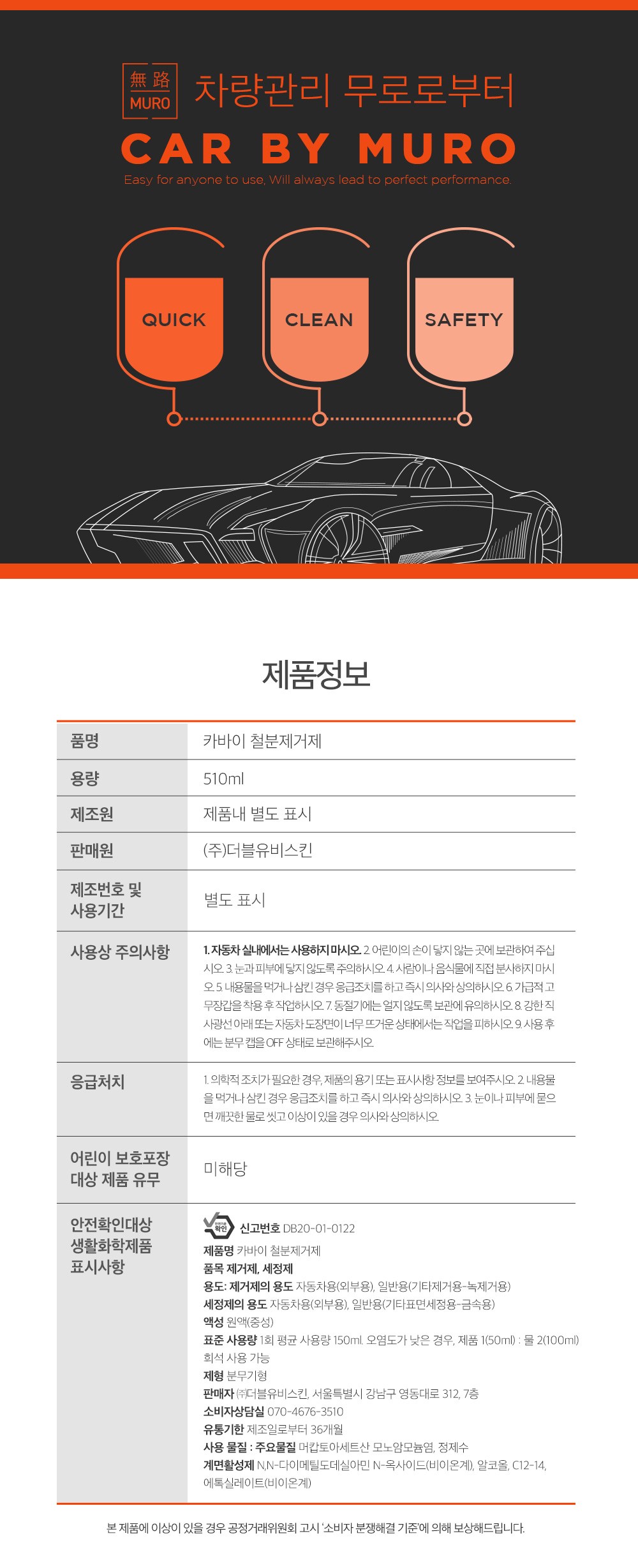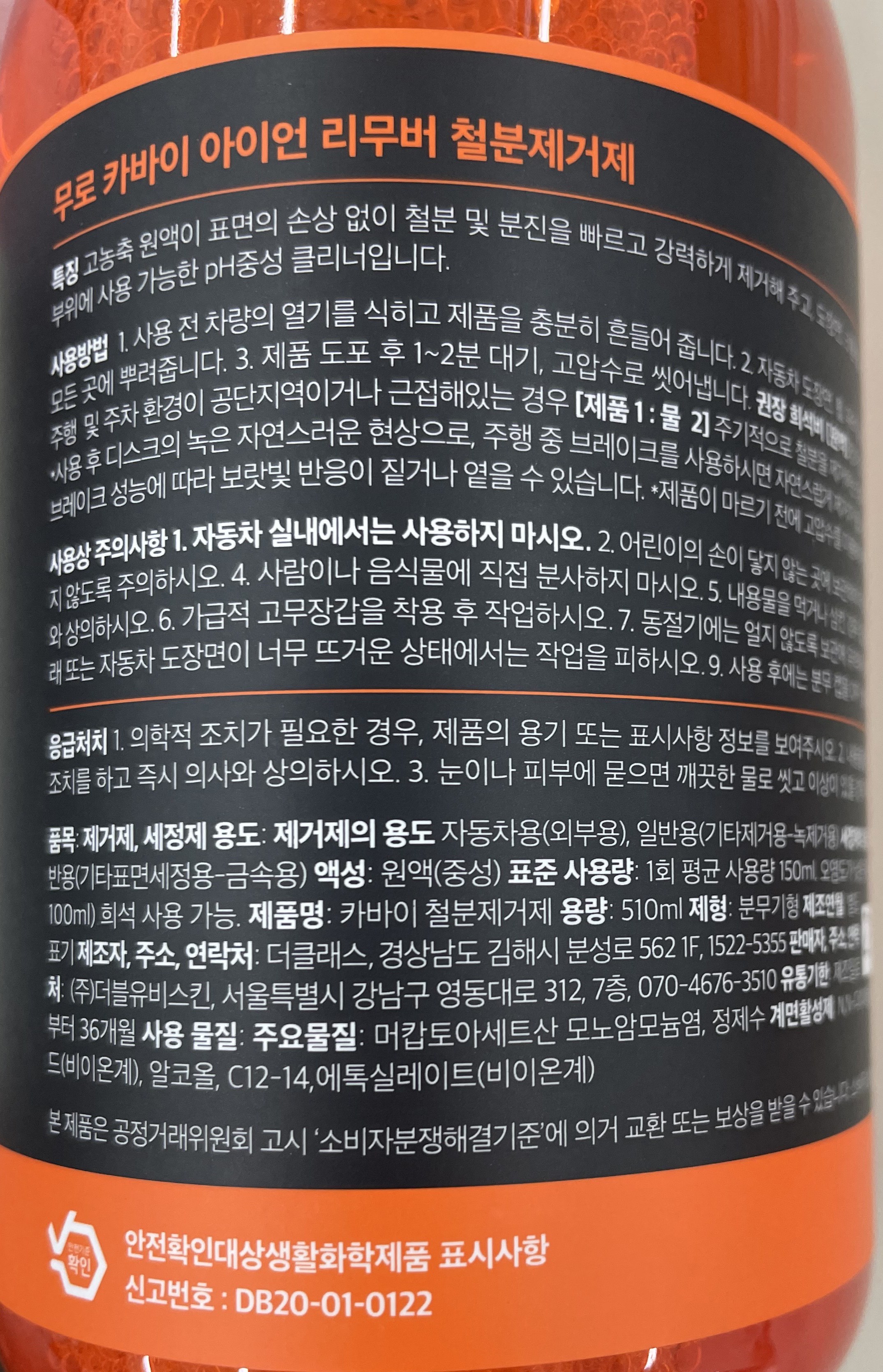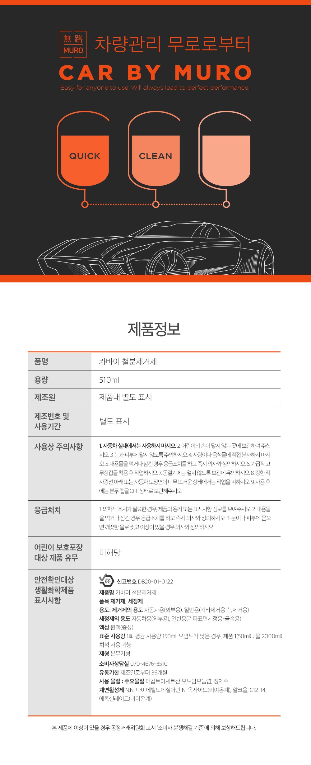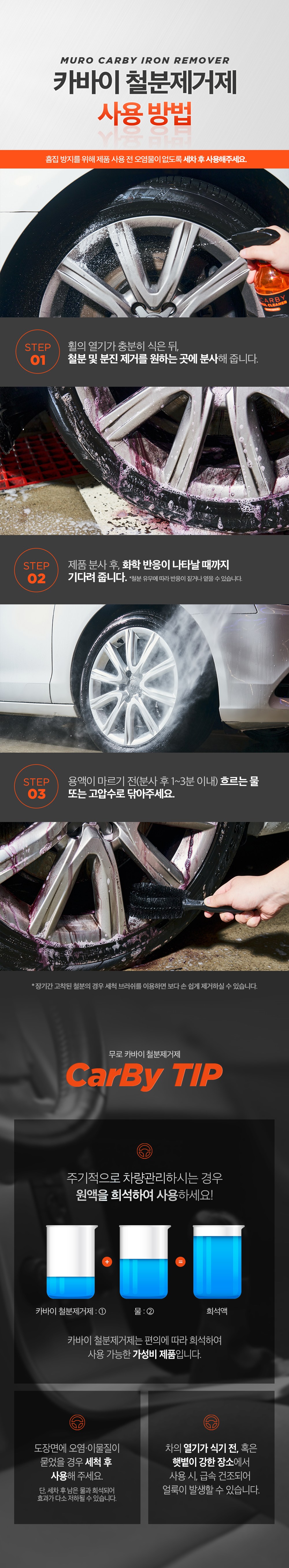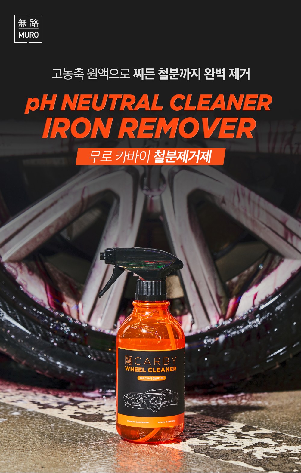 MURO 無路 Carby Iron Remover 鐵粉去除劑,能快速且有效地去除輪胎上的鐵粉及其他汙染物。其高濃縮配方,只需少量即可達到顯著的清潔效果,省時又經濟。本產品為中性清潔劑,不傷輪胎表面,適用於各種材質的輪胎,讓您使用。定期使用,能保持輪胎清潔,延長輪胎使用壽命,讓您的愛車隨時保持最佳狀態。使用後,輪胎煥然一新,讓您的愛車更具吸引力。
