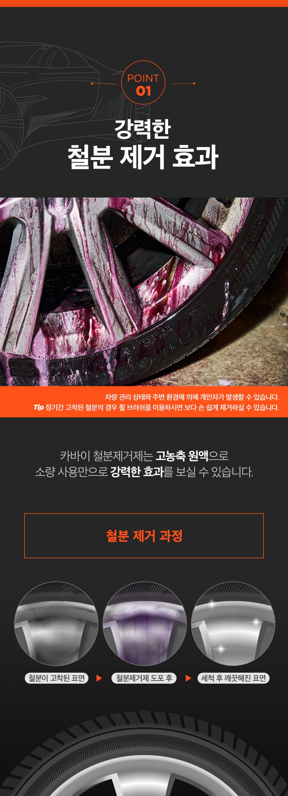 - 輕鬆去除輪胎上的頑固鐵粉,讓您的愛車輪胎恢復原有的光澤,展現最佳狀態。