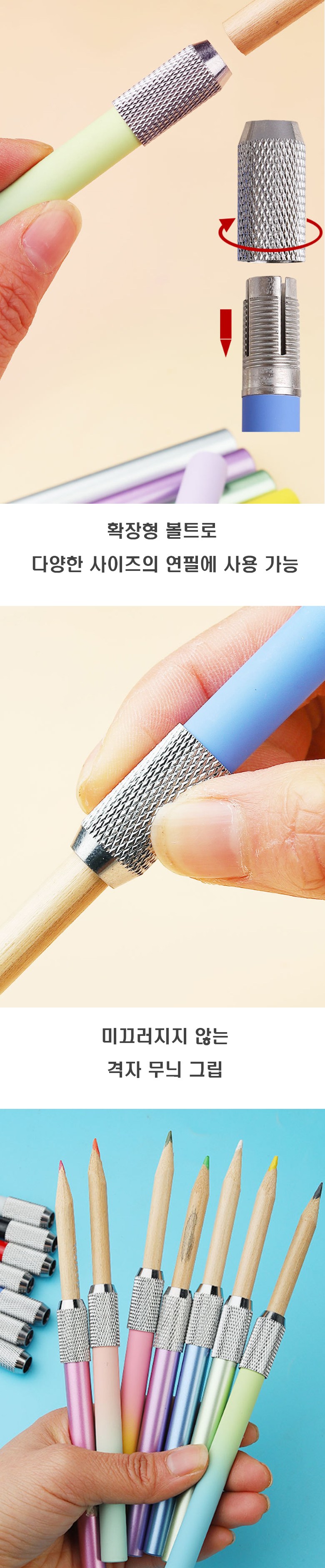 這款Madakkumi Mongdang鉛筆延長筆套組,讓您不再煩惱短鉛筆的困擾。漸變色彩設計,為您的文具增添一抹亮麗。防滑格子紋握把,提供舒適穩定的書寫體驗。適用於美術鉛筆、彩色鉛筆等多種用途,讓學習和創作更加多樣化。可擴展式筆套設計,適用於各種尺寸的鉛筆。