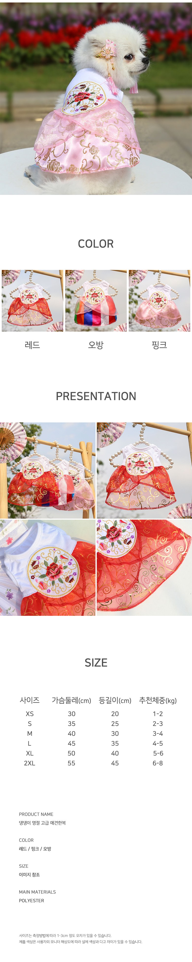 Market A 狗狗節日高級韓服, 紅色