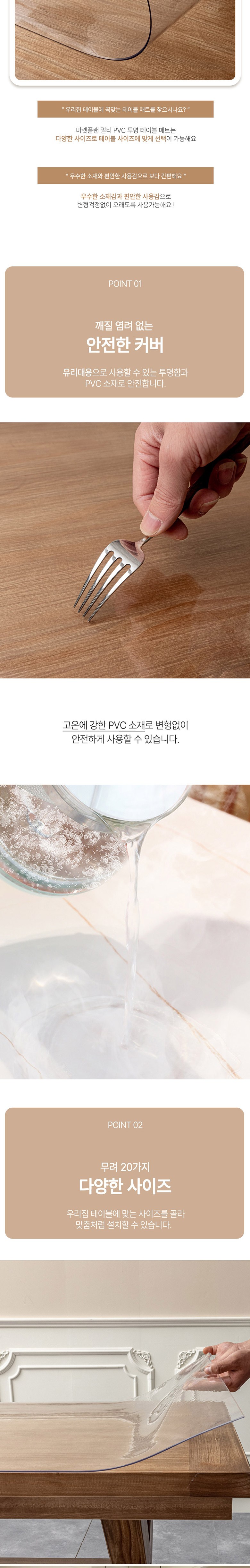 - 透明PVC材質,輕鬆擦拭清潔,告別油漬髒汙,讓桌面隨時保持乾淨整潔。