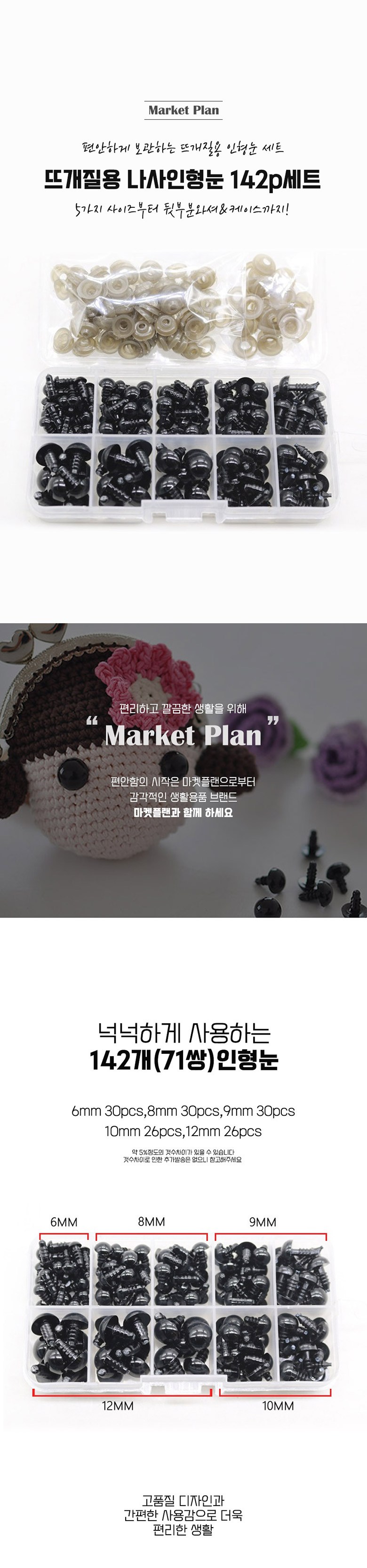 Market Plan針織螺絲娃娃眼睛套組,為您的手工藝作品注入靈魂。這款套組包含142個混合顏色的螺絲娃娃眼睛,提供6mm至12mm等多種尺寸選擇,滿足您不同的創作需求。套組還貼心附贈收納盒,方便您整理和攜帶這些小配件,讓您的工作空間更加整潔有序。無論是製作針織娃娃還是其他手工藝品,這款套組都能為您的作品增添更多趣味和個性。額外附贈背部墊圈,使用更安心。