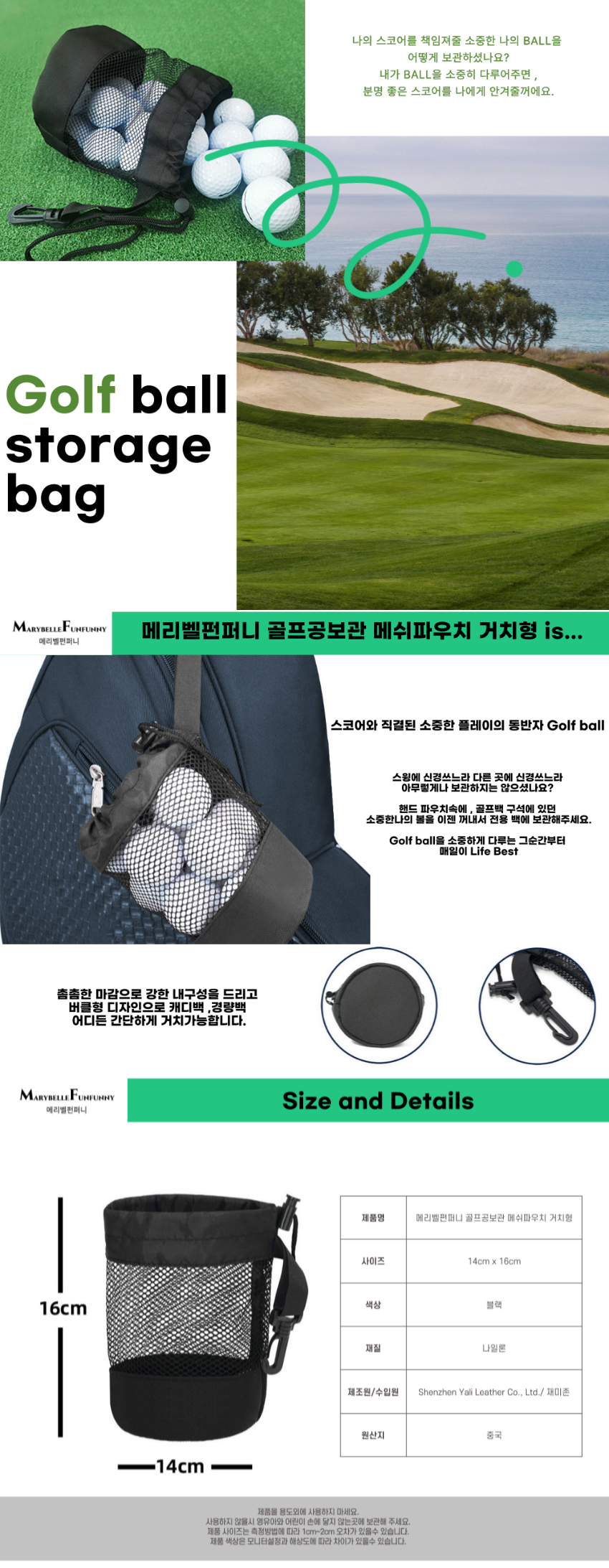 Marybellefunfunny 高爾夫球收納網袋 掛式, 1個, 黑色
