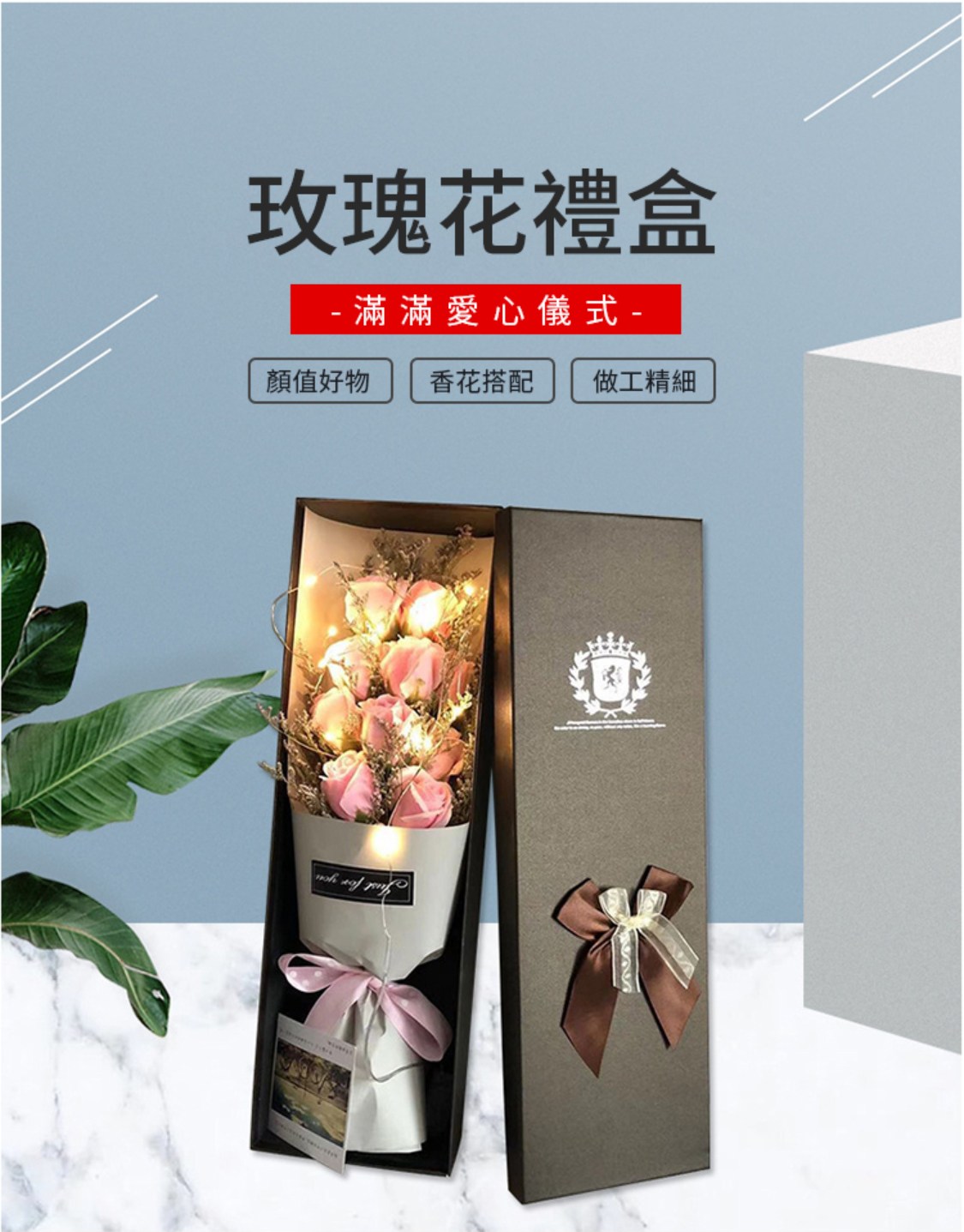 Mass 生活好物 玫瑰香薰永生花禮盒,以精緻的紅玫瑰永生花搭配香薰設計,為您打造獨特浪漫的送禮選擇。永生花經過特殊處理,能長時間保存,無需特別照料,讓美麗永恆綻放。禮盒內含LED燈串,點亮後更顯浪漫溫馨。無論是情人節、生日或紀念日,這款禮盒都能傳達您濃濃的情意,讓對方感受到您的用心。精緻的包裝設計,更提升整體質感,讓送禮更顯體面大方。