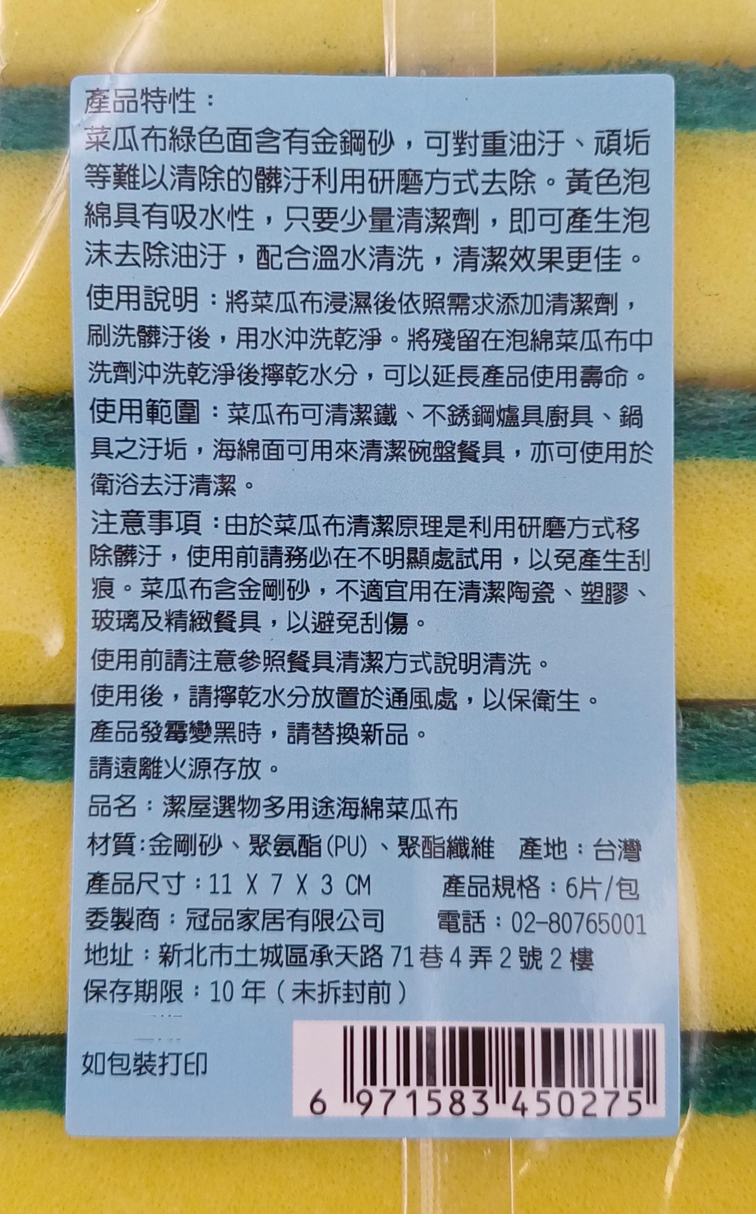- 多用途海綿菜瓜布,適用於鐵鍋、水槽、爐具等,讓您的廚房清潔更加全面,一物多用超划算。