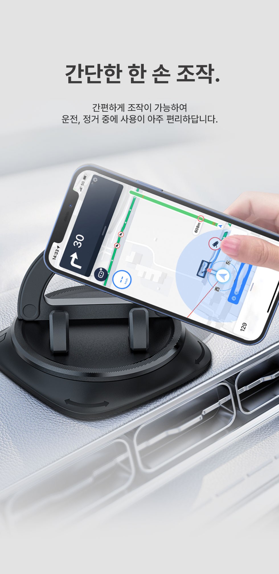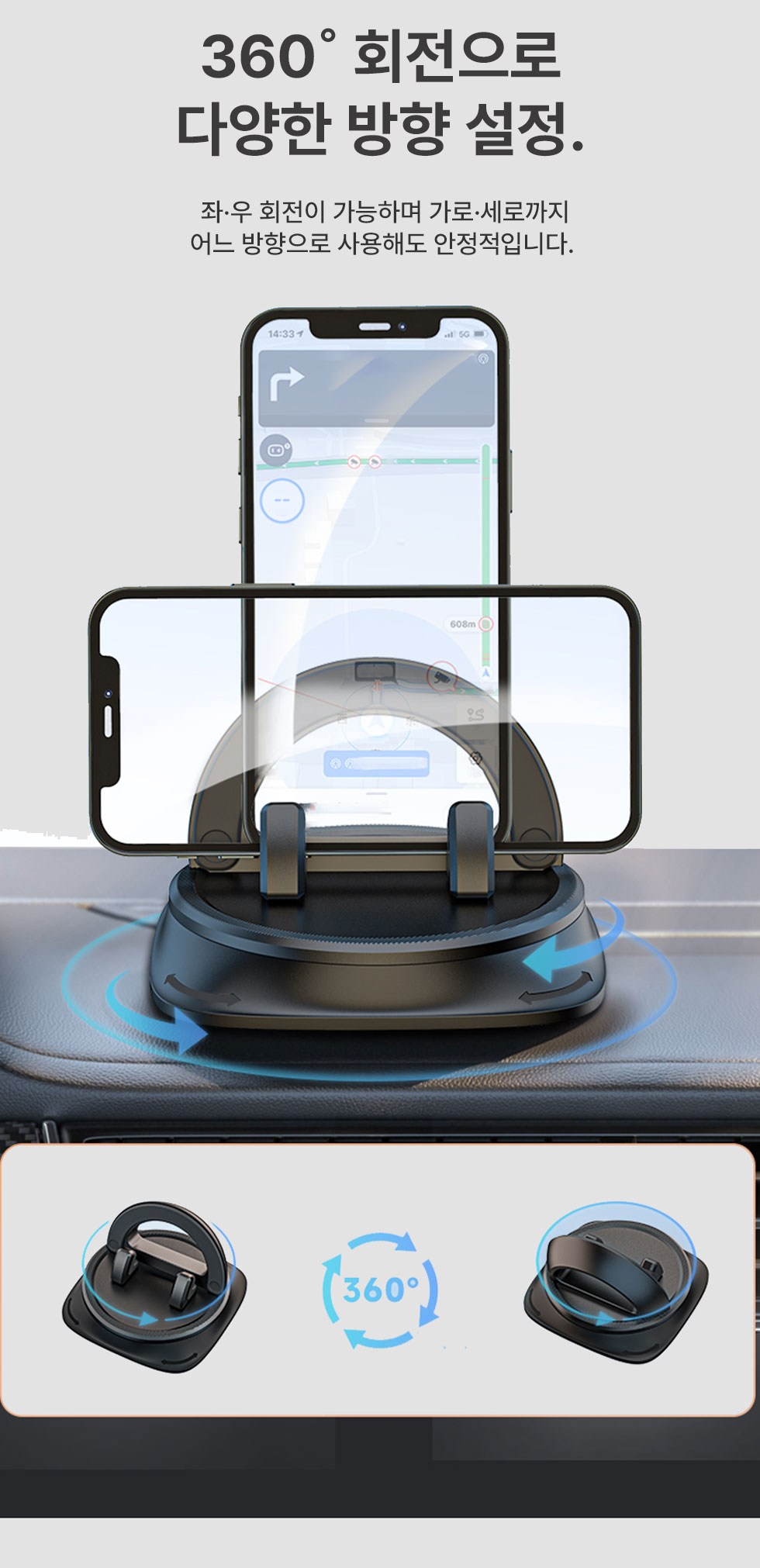 - 360度旋轉設計,讓您輕鬆調整手機角度,導航更方便,視野更廣闊。