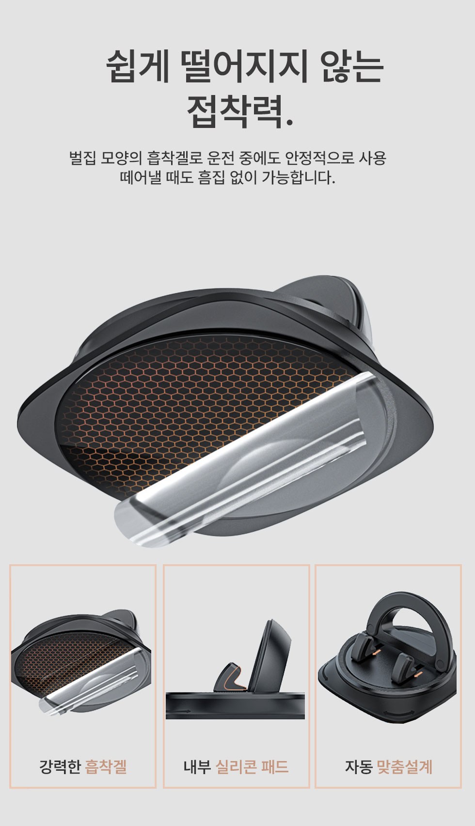 Meyton 360度旋轉車用儀表板手機支架,採用強力黏著力設計,能穩固地固定在儀表板上,讓您在行車過程中也能使用。此款手機支架具備360度旋轉功能,可隨意調整手機角度,不論是橫向或縱向都能穩定使用,提供最佳的觀看視野。操作簡單方便,單手即可輕鬆操作,讓您在駕駛或停車時都能快速調整。適用於各種手機型號,讓您享受更安全、便捷的駕駛體驗。蜂巢狀吸附凝膠,即使在駕駛時也能穩定使用,取下時也不會留下刮痕。