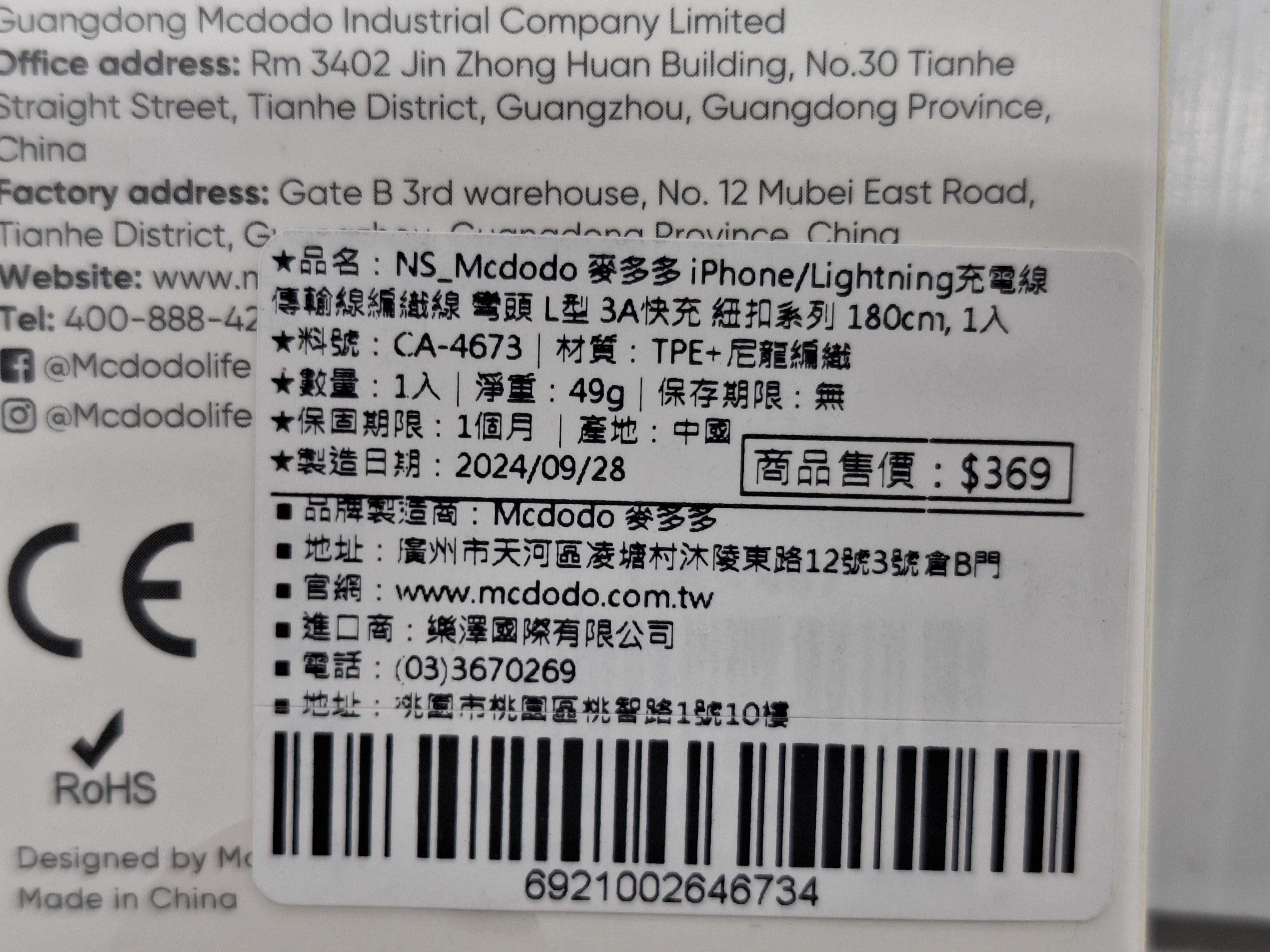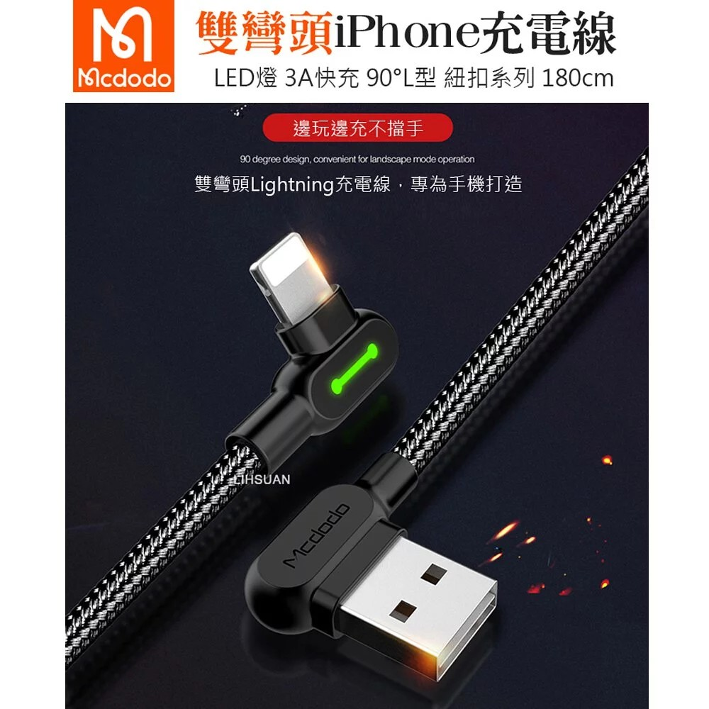 Mcdodo 麥多多紐扣系列充電線,專為iPhone/Lightning設備設計,提供3A快速充電和數據傳輸功能。180cm的編織線材質,耐用不易損壞,彎頭L型設計更方便使用,減少線材彎折。獨特的LED指示燈設計,讓您隨時掌握充電狀態。這款充電線不僅支援快速充電,還具備資料同步功能,讓您輕鬆管理iPhone資料。雙面插拔連接器設計,使用更方便,無需擔心插反問題。