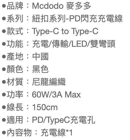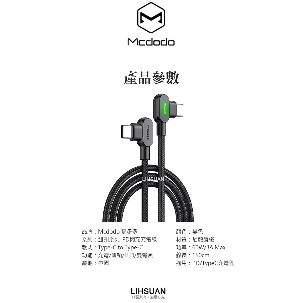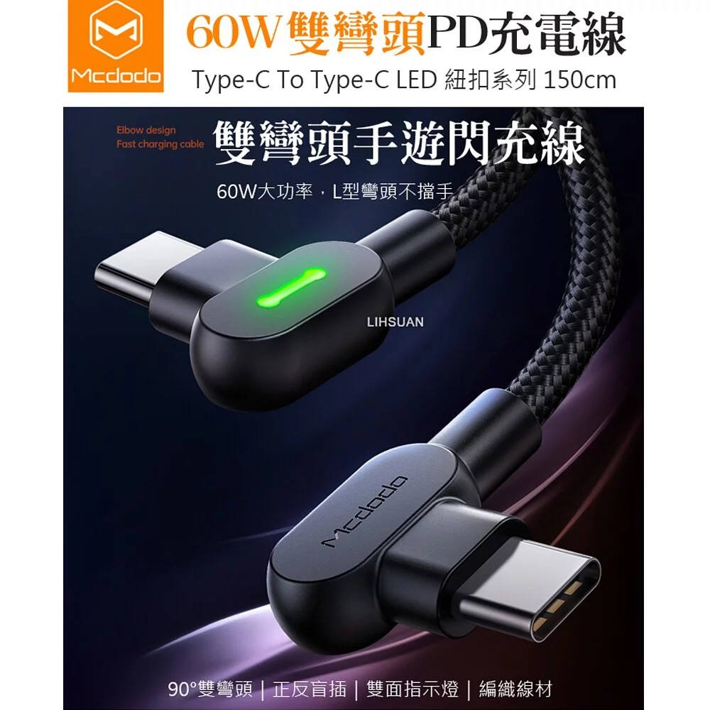 Mcdodo 麥多多雙Type-C/PD充電線,採用彎頭設計,讓您在遊戲或工作時不再受線材干擾。這款1.5米長的黑色充電線,不僅支援60W快充,能迅速為您的設備充電,還具備LED指示燈,方便您隨時掌握充電狀態。尼龍編織線材堅固耐用,不易纏繞,雙Type-C接口設計,正反皆可插,使用更便捷。無論是手機、平板還是筆記型電腦,都能輕鬆應對,是您數位生活的理想選擇。