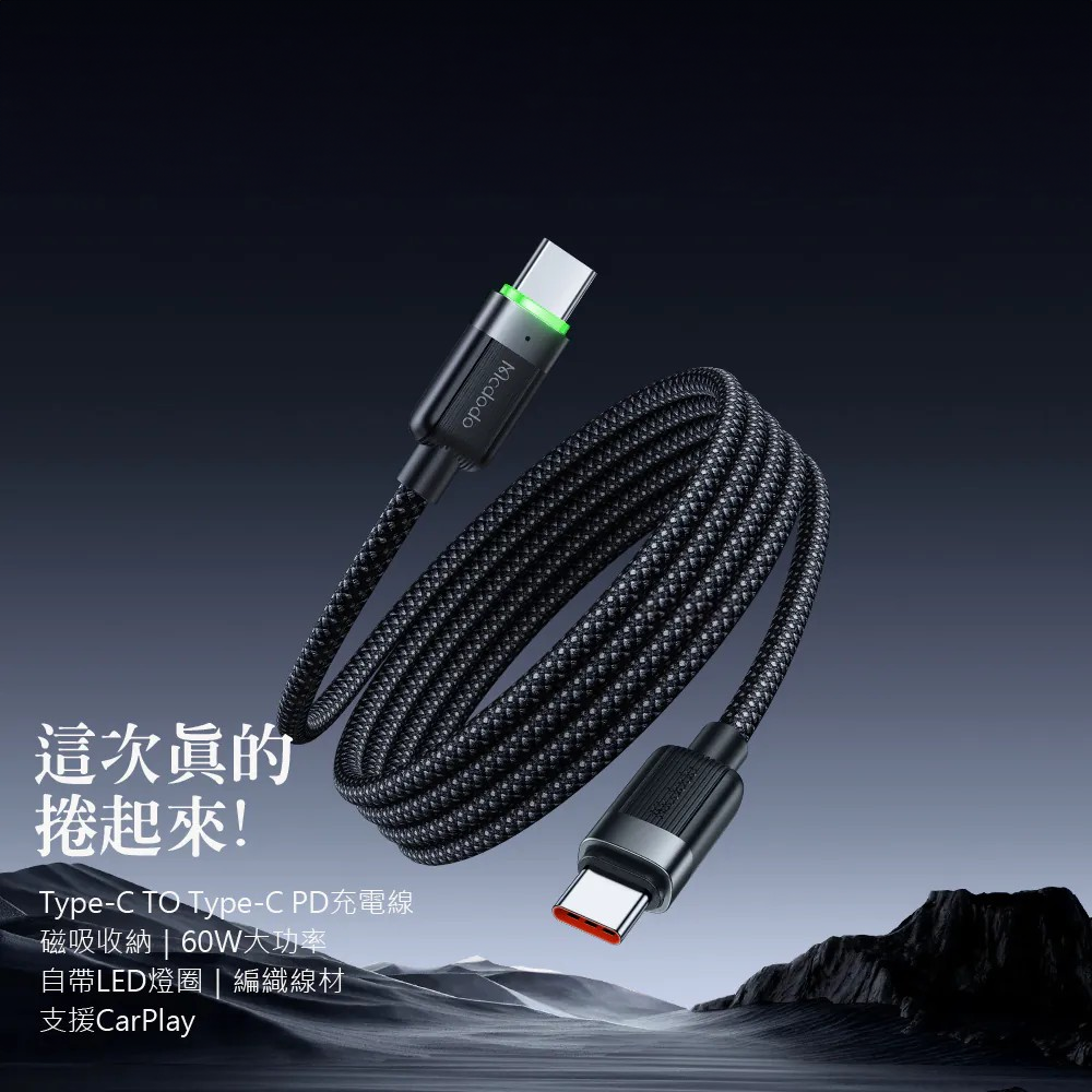 Mcdodo 磁吸收納編織充電線,採用Type C to Type C接口,支援60W快速充電,讓您的設備迅速恢復電力。1.2米的長度,方便您在各種場合使用,無論是辦公室、家中還是旅途中。編織線材質不僅耐用,告別線材整理的煩惱。內置LED指示燈,方便您隨時了解充電狀態。磁吸收納設計,讓收納更加便捷,告別雜亂。