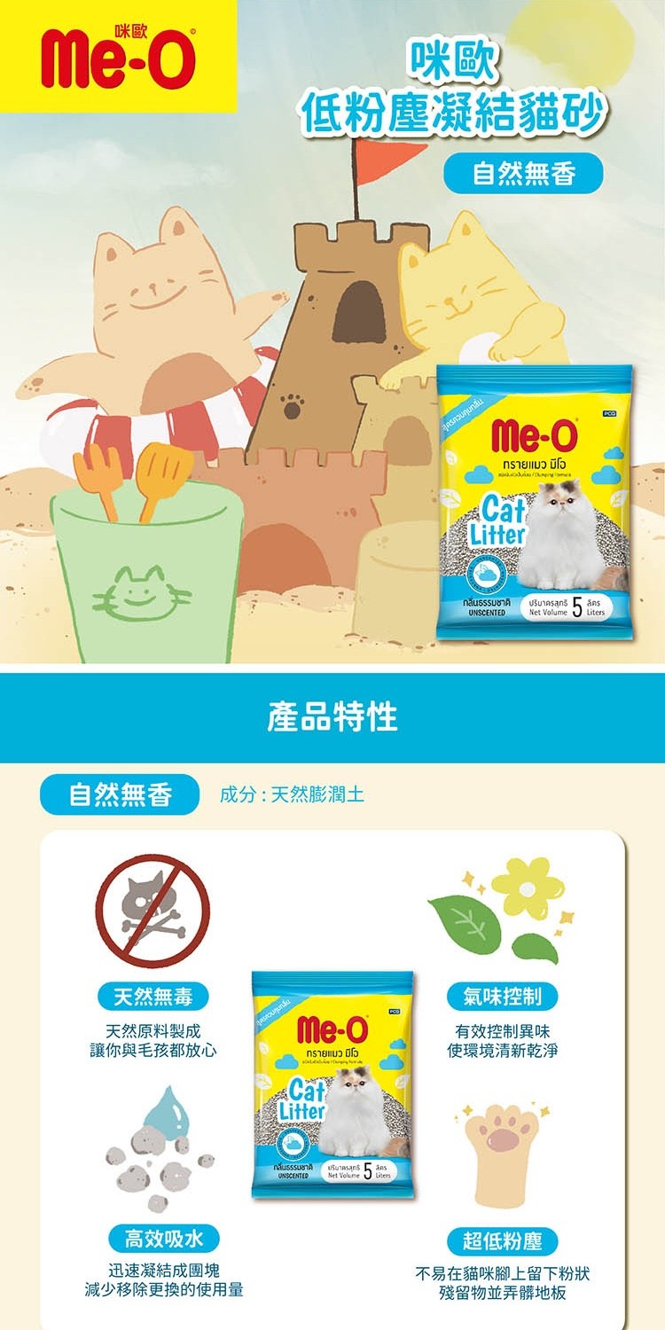 Me-O 咪歐 低粉塵凝結貓砂,為您的愛貓提供一個乾淨舒適的如廁環境。這款自然無香的礦砂貓砂,能有效凝結貓咪的排泄物,方便清理,同時減少粉塵產生,保護您和愛貓的呼吸道健康。5L大容量包裝,經濟實惠,適合多貓家庭或長期使用,讓您安心使用。給您的愛貓最好的,就從Me-O 咪歐貓砂開始,讓牠享受潔淨舒適的每一天。