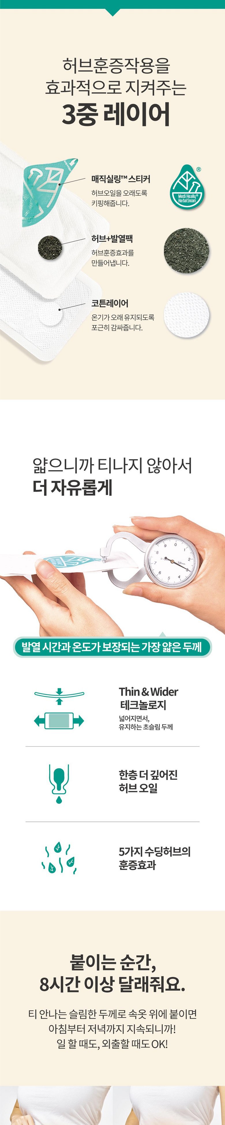 Medi Heally草本溫感貼片,嚴選洋甘菊、艾草、魚腥草、薰衣草、迷迭香等五種舒緩草本,透過草本薰蒸效果,溫柔呵護您的身體。輕薄的貼片設計,讓您在日常活動中也能自在使用,不易被察覺。撕開魔術封口,草本精油與發熱粒子結合,產生溫熱感,舒緩不適,或是需要溫暖呵護的時刻,Medi Heally草本溫感貼片都是您的最佳選擇。給您帶來持久的溫暖和舒適感。