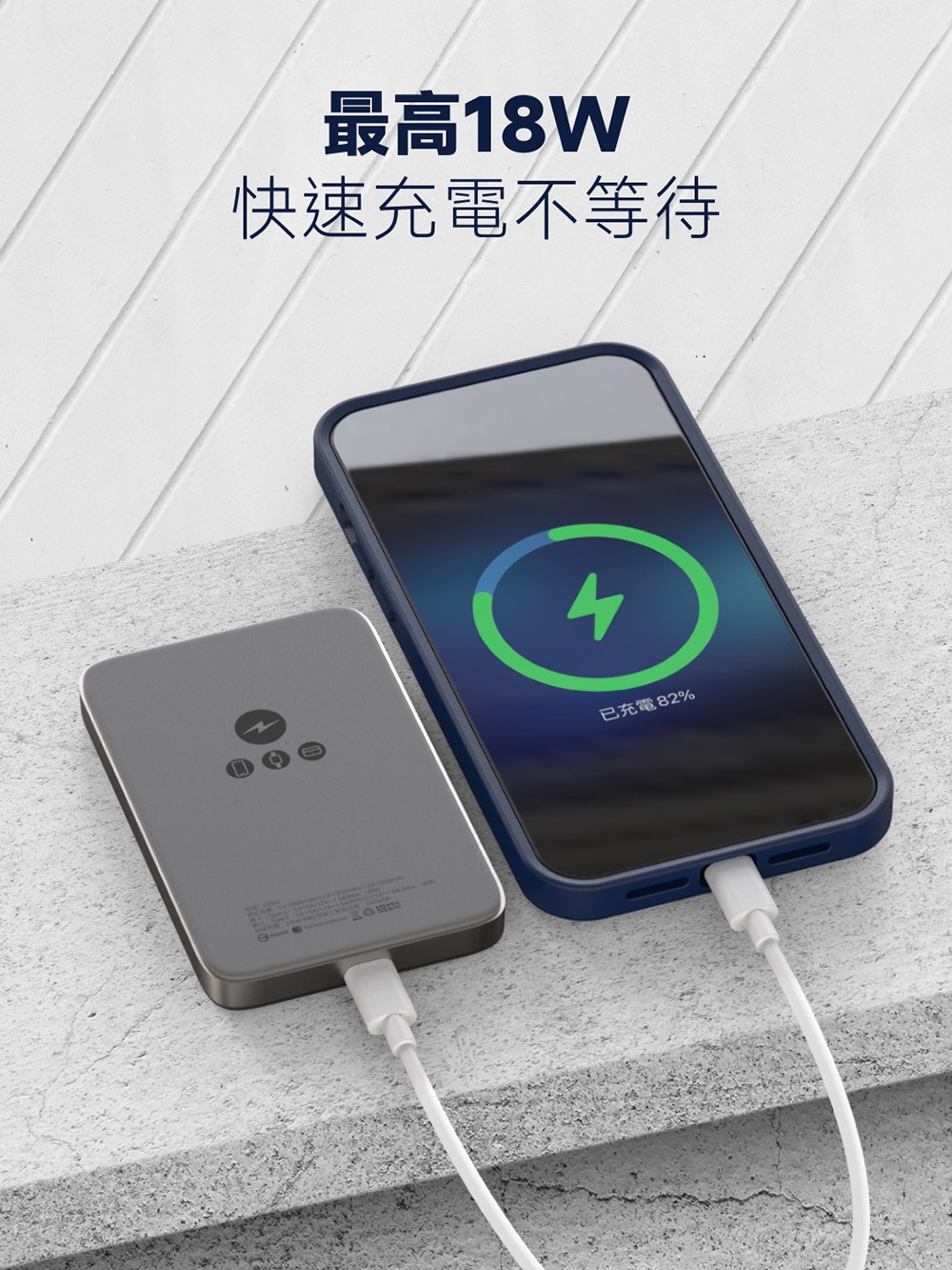 - 輕巧設計讓您隨身攜帶,Meet Mind磁吸行動電源是您外出時的理想選擇,輕鬆放入包包不佔空間。