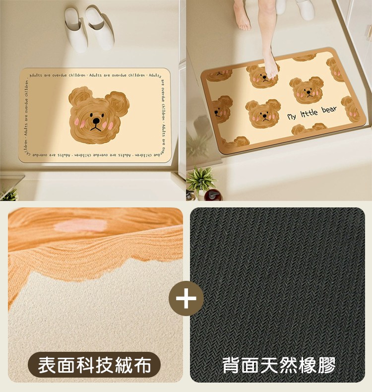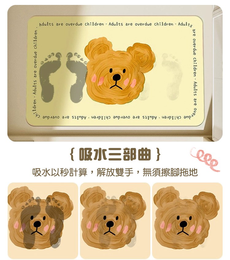 - 可愛奶油熊圖案,增添浴室童趣,讓每次踏出浴缸都充滿愉悅心情,療癒感十足。