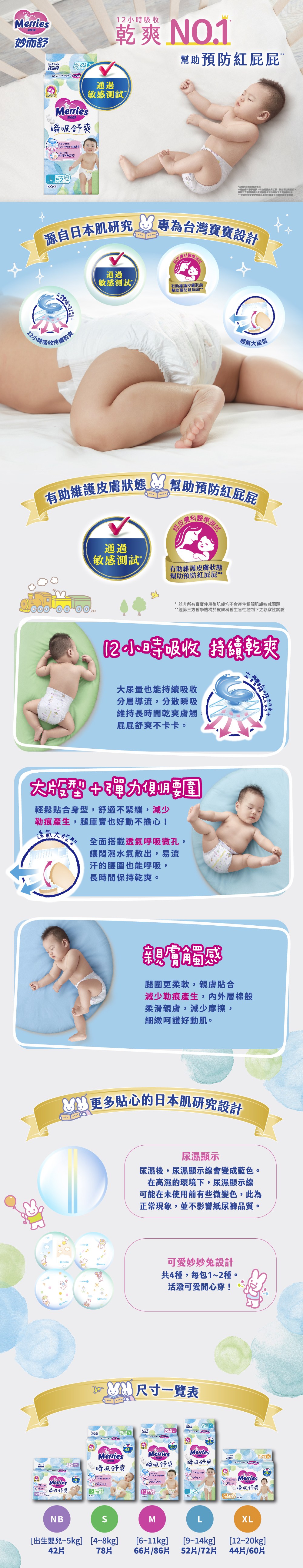 - 獨特瞬吸技術,迅速吸收尿液,長效乾爽,讓寶寶享受舒適睡眠,媽媽更安心。
