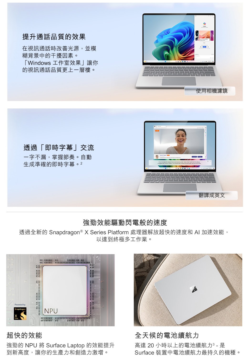 - 搭載Snapdragon X Plus處理器,提供卓越效能,輕鬆應對多任務處理與複雜應用。