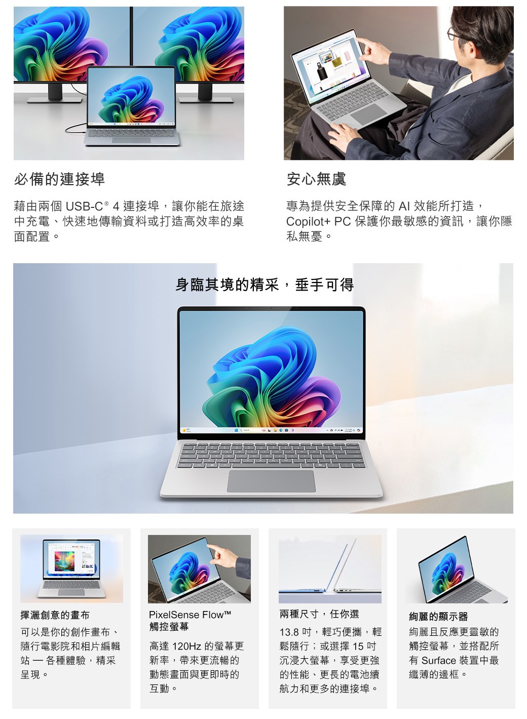 - 13吋輕薄觸控螢幕,提供極致便攜性,隨時隨地享受高效工作與娛樂體驗。