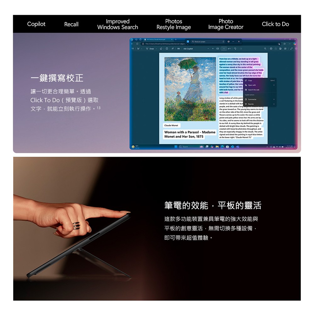 - 13吋觸控螢幕,輕薄便攜,隨時隨地享受高效工作與娛樂體驗。