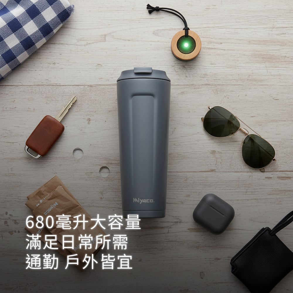 Miyaco 米雅可品味316不銹鋼真空咖啡隨行杯,以其680ml的容量和時尚水泥灰外觀,成為您日常咖啡或飲品的理想選擇。杯身採用內層SUS316和外層SUS304不銹鋼,確保飲品安全無虞,同時提供卓越的保溫效果。真空設計有助於長時間保持飲品溫度,讓您隨時享受最佳風味。無論是上班、旅行或戶外活動,這款隨行杯都能滿足您的需求。選擇Miyaco,品味生活每一刻。
