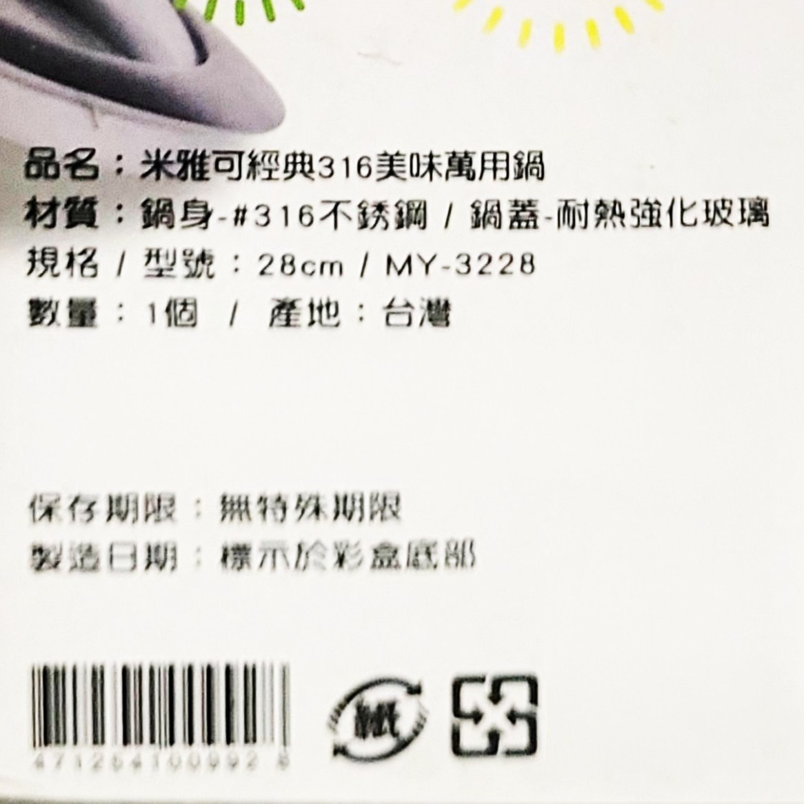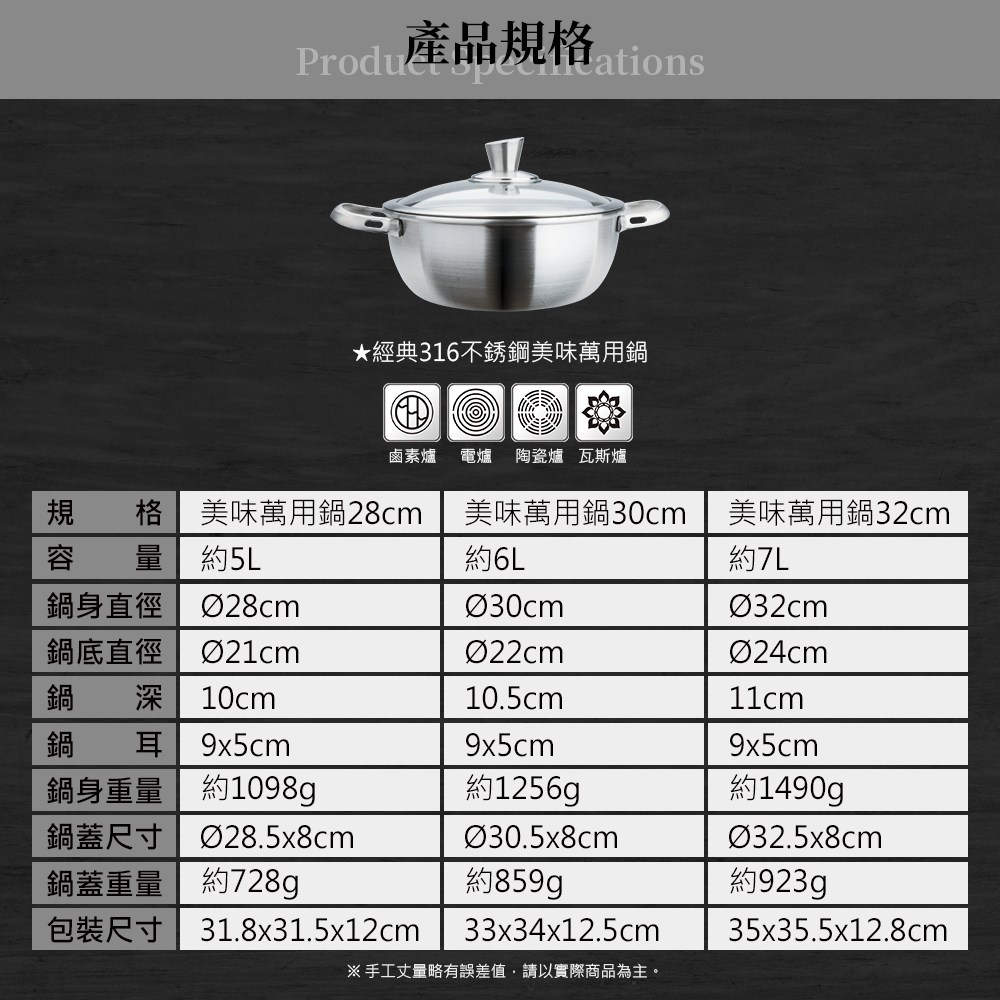這款MiyAco米雅可經典316不鏽鋼美味萬用鍋,是您廚房裡不可或缺的好幫手。採用頂級316不鏽鋼材質,不僅耐腐蝕、耐酸鹼、耐高溫,更不易藏污納垢,讓您烹調更安心。28公分的直徑和5公升的容量,適合各種料理需求,無論是燉煮、煲湯還是快炒,都能輕鬆應對。鍋身經過拋光處理,外觀精美,且適用於電磁爐,讓您在各種爐具上都能使用自如。搭配耐熱強化玻璃鍋蓋,烹煮過程一目了然,隨時掌握食材的變化。