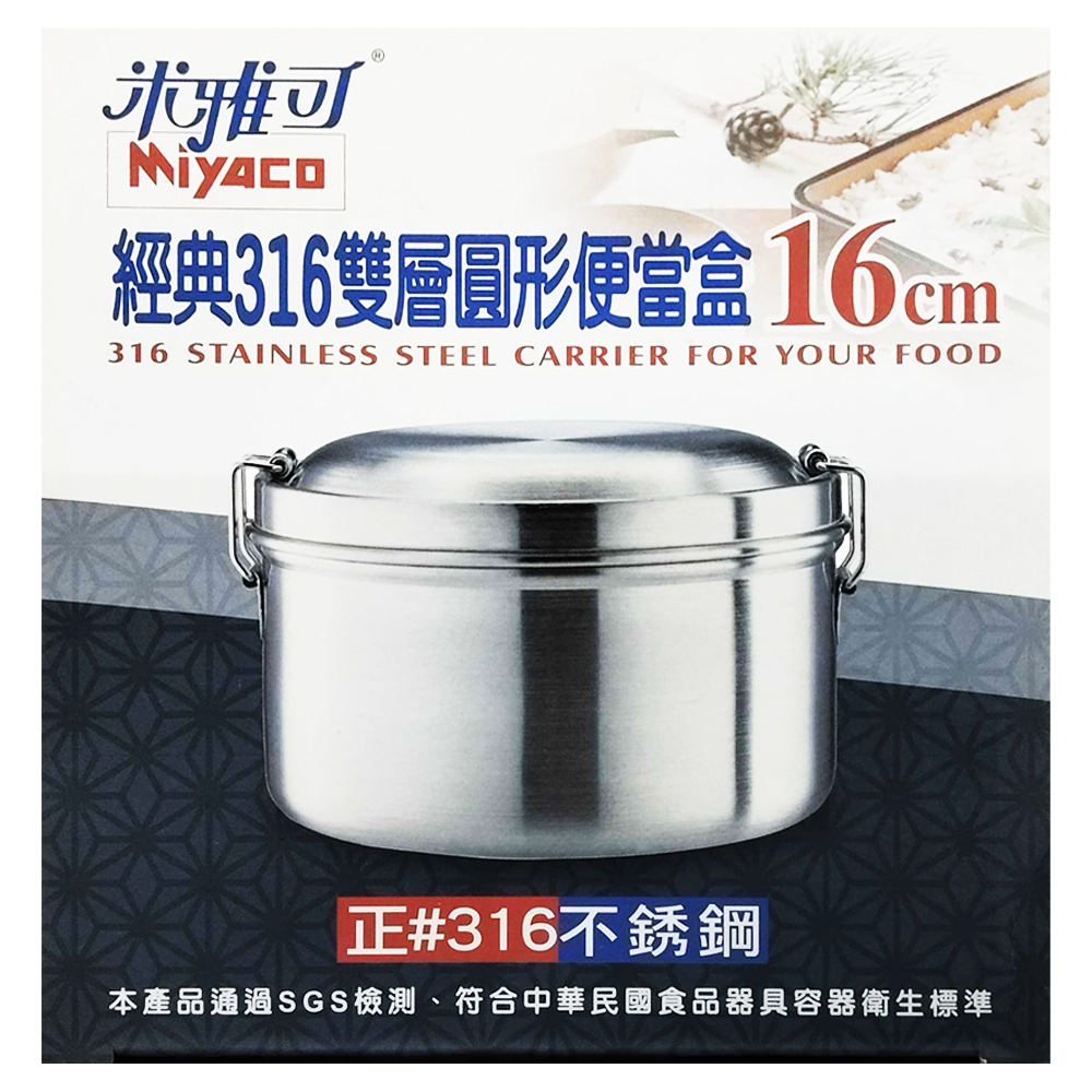 Miyaco米雅可經典316不銹鋼雙層圓形便當盒,是您健康飲食生活的好夥伴。採用頂級316不銹鋼製造,耐酸鹼、抗腐蝕,確保食材安全無虞。雙層設計能有效分隔飯菜,保持食物原味,附贈湯匙方便您隨時享用美味。16公分尺寸適中,無論是上班、上學或戶外野餐都非常適合。通過SGS檢測,符合食品器具衛生標準,讓您安心使用。