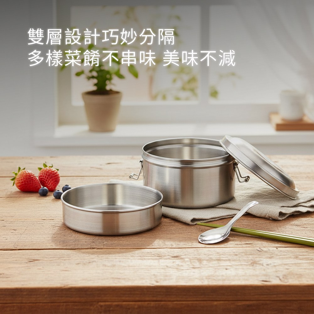 - 雙層設計讓飯菜分層擺放,保持食材原味,避免味道混雜影響用餐體驗。