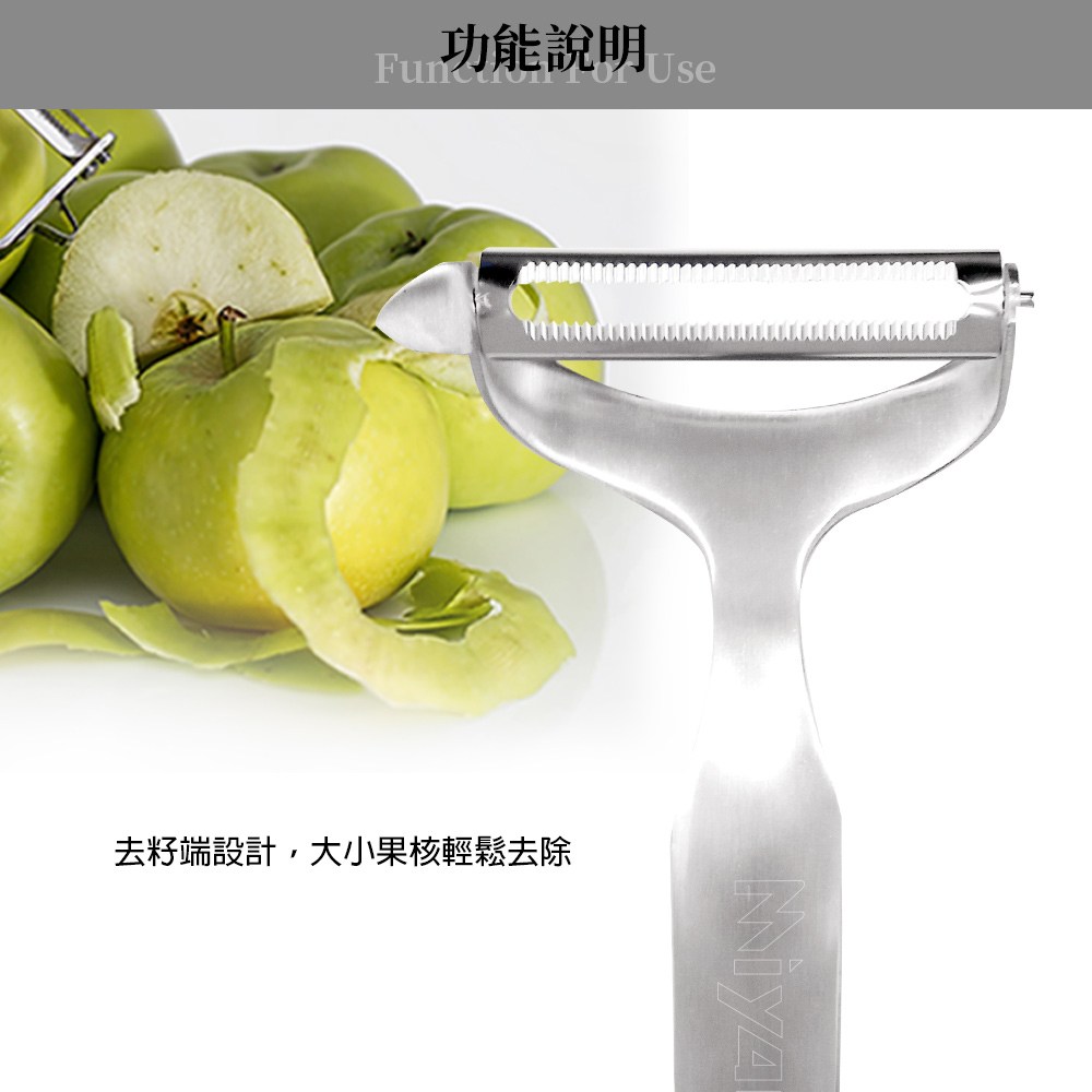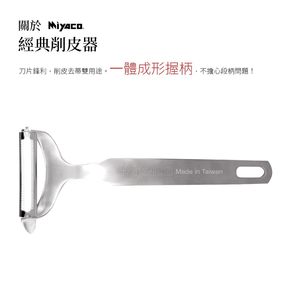MiyAco 米雅可 MY-5018 304不銹鋼刮皮器,是您廚房裡不可或缺的好幫手。採用食品級304不銹鋼刀刃,安全耐用,讓您安心處理食材。Y型旋轉刀頭設計,輕鬆應對各種蔬果,削皮快速又均勻。符合人體工學的握柄,握感舒適,長時間使用也不易疲勞。台灣製造,品質保證,讓您輕鬆享受料理的樂趣。
