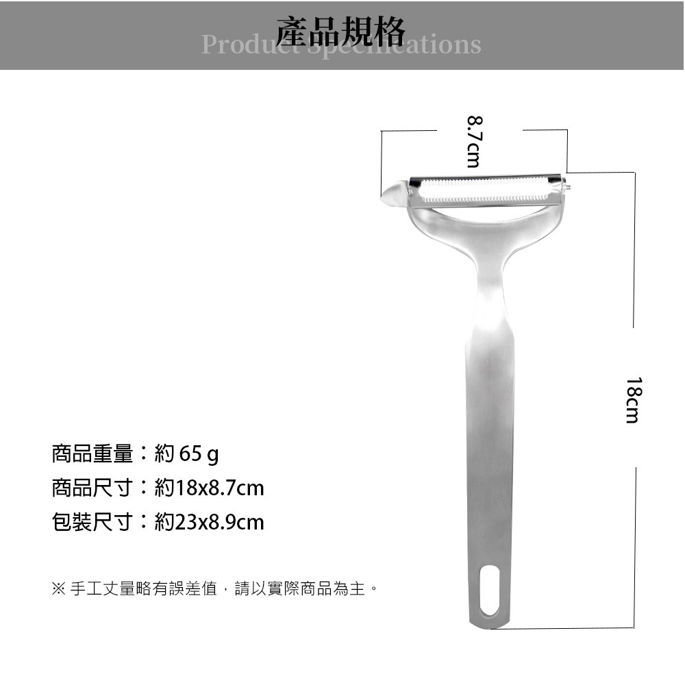 - 人體工學握柄設計,提供舒適的抓握感,輕鬆省力完成食材削皮工作。