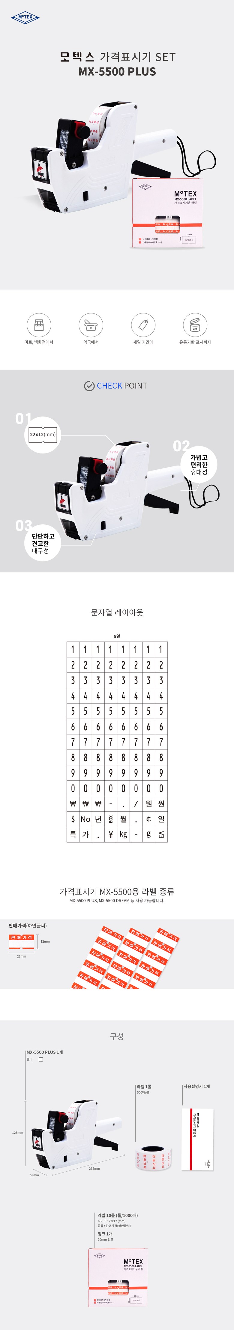 MoTEX 價格標示標籤紙 白色 MX-5500 PLUS + 白色字體專用標籤紙 10入, 500格, 1套