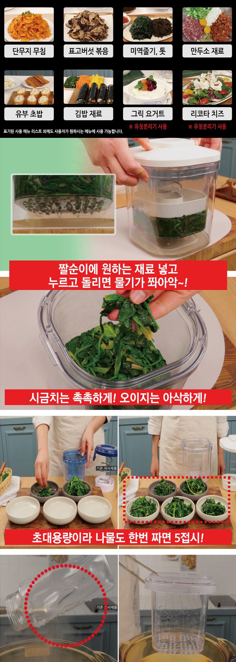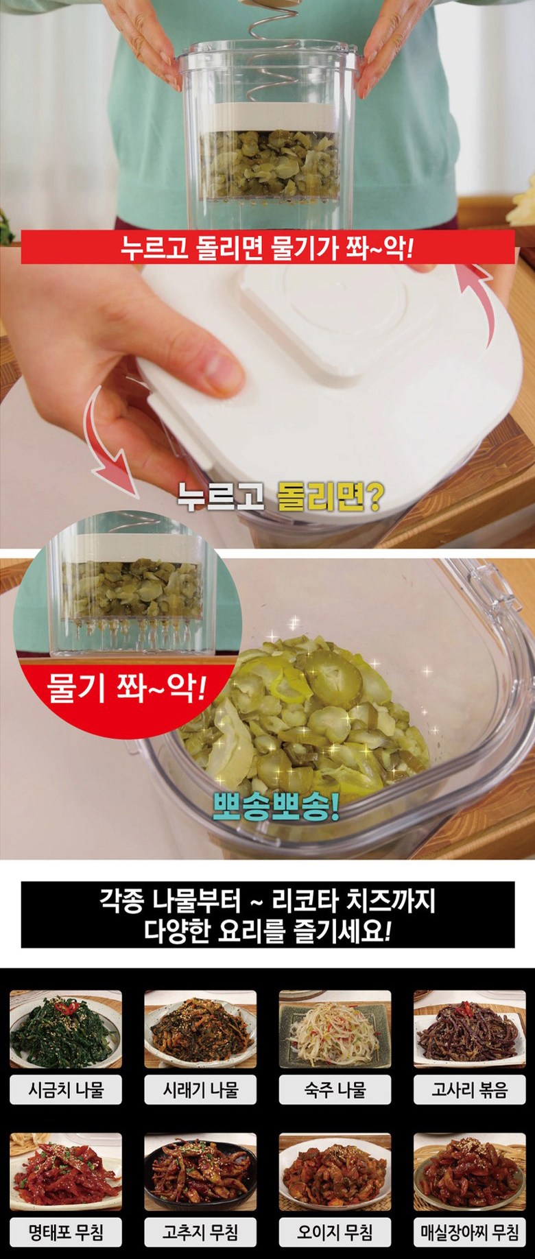 - 輕鬆按壓旋轉,快速瀝乾蔬菜水果水分,保持食材清脆口感,料理更美味。