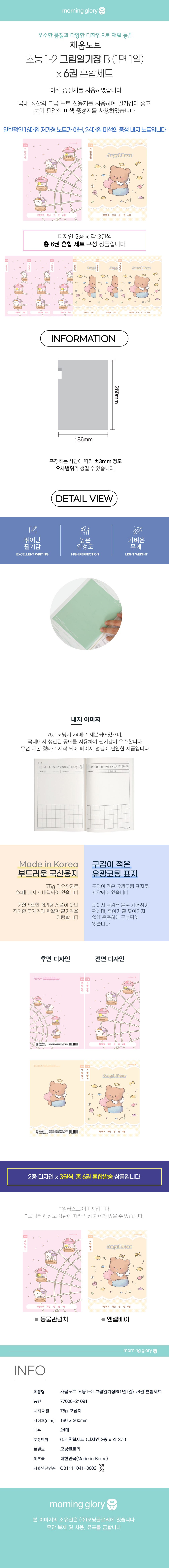 Morning Glory Chaeum Note小學圖畫日記本,專為1-2年級學童設計,記錄孩子們的成長點滴。採用國內生產的米色中性紙,書寫感極佳,保護孩子們的視力。無線裝訂設計,翻頁方便,讓孩子們可以輕鬆書寫和繪畫。每組包含六本混合套裝,兩種設計各三本,滿足孩子們不同的喜好。讓孩子們在書寫的過程中,培養良好的書寫習慣和記錄生活的能力。