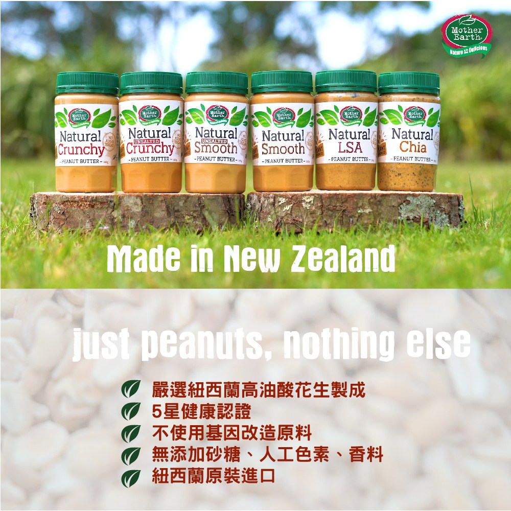 壽滿趣 MOTHER EARTH 超級顆粒花生醬奇亞籽。這款380g罐裝花生醬,嚴選優質花生與奇亞籽,不添加砂糖,讓您享受純粹的食材原味。奇亞籽富含膳食纖維與Omega-3脂肪酸,為您提供額外的營養價值。無論是搭配吐司、燕麥片,或是製作創意料理,都能為您的餐點增添豐富口感與健康元素。壽滿趣 MOTHER EARTH 花生醬,是您健康美味生活的理想選擇。