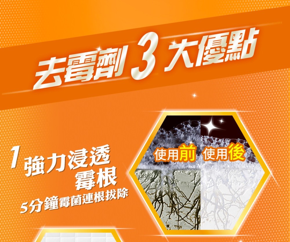 - 只需五分鐘,霉斑即可去除,無需費力刷洗,輕鬆享受潔淨空間。