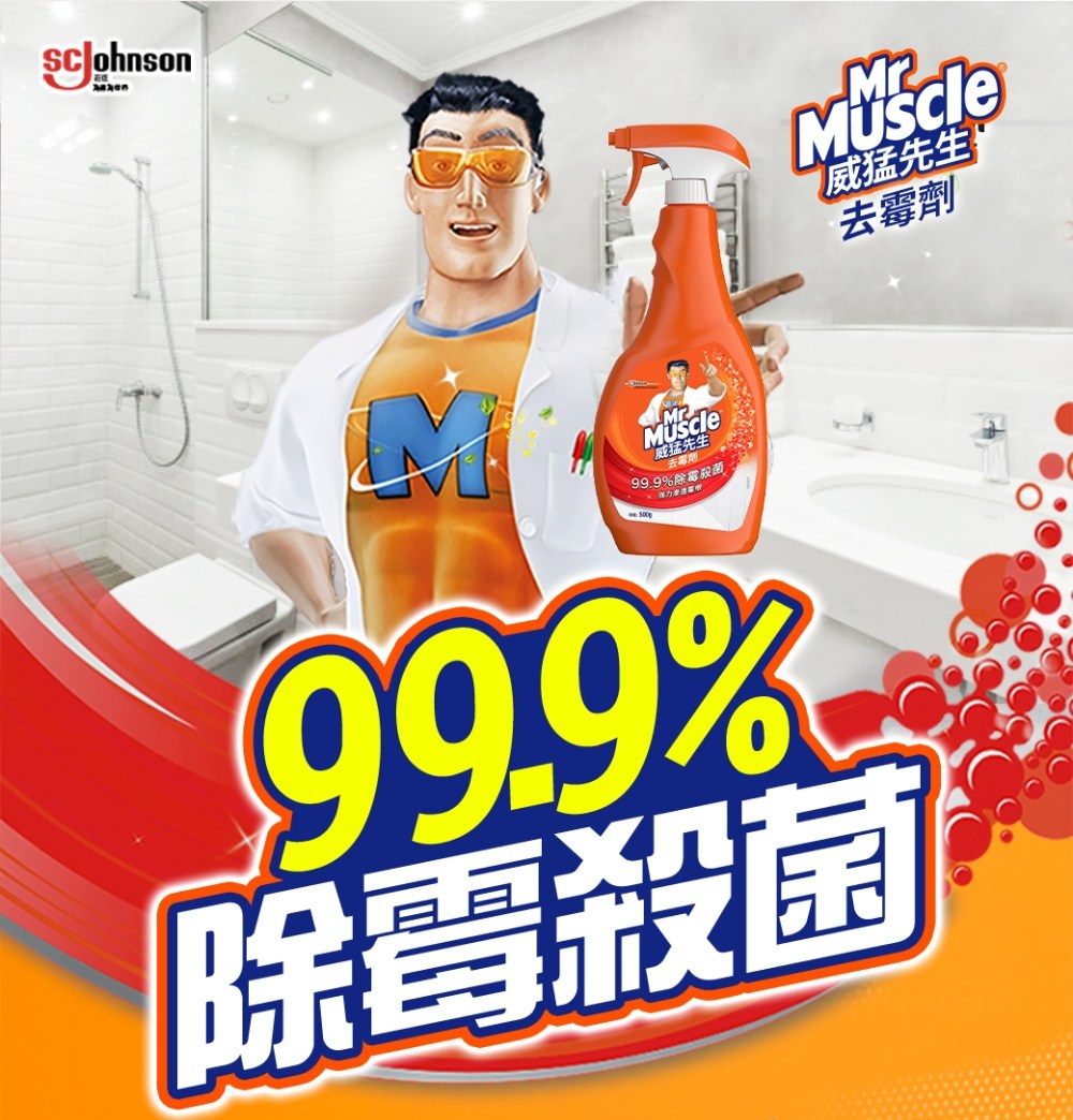 - 威猛先生去霉劑能深入霉根,輕鬆瓦解頑固霉斑,讓浴室煥然一新。