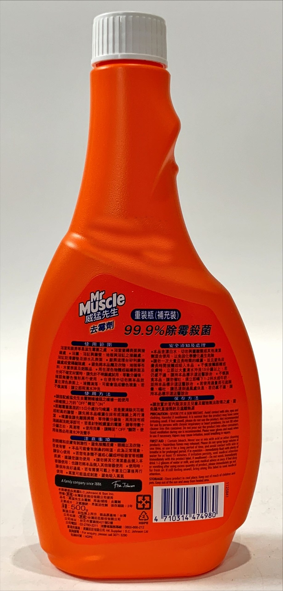 威猛先生去霉劑補充瓶,輕鬆解決浴室和廚房的霉菌問題。本產品能有效去除99.9%的霉菌,讓您的居家環境更乾淨衛生。液態配方能深入滲透霉根,徹底清潔,無香配方不刺激,使用更安心。適用於多種表面,包括浴室磁磚、廚房檯面等。使用時請注意保持通風,並避免接觸眼睛和皮膚。500g補充瓶,經濟實惠,讓您輕鬆維持居家清潔。