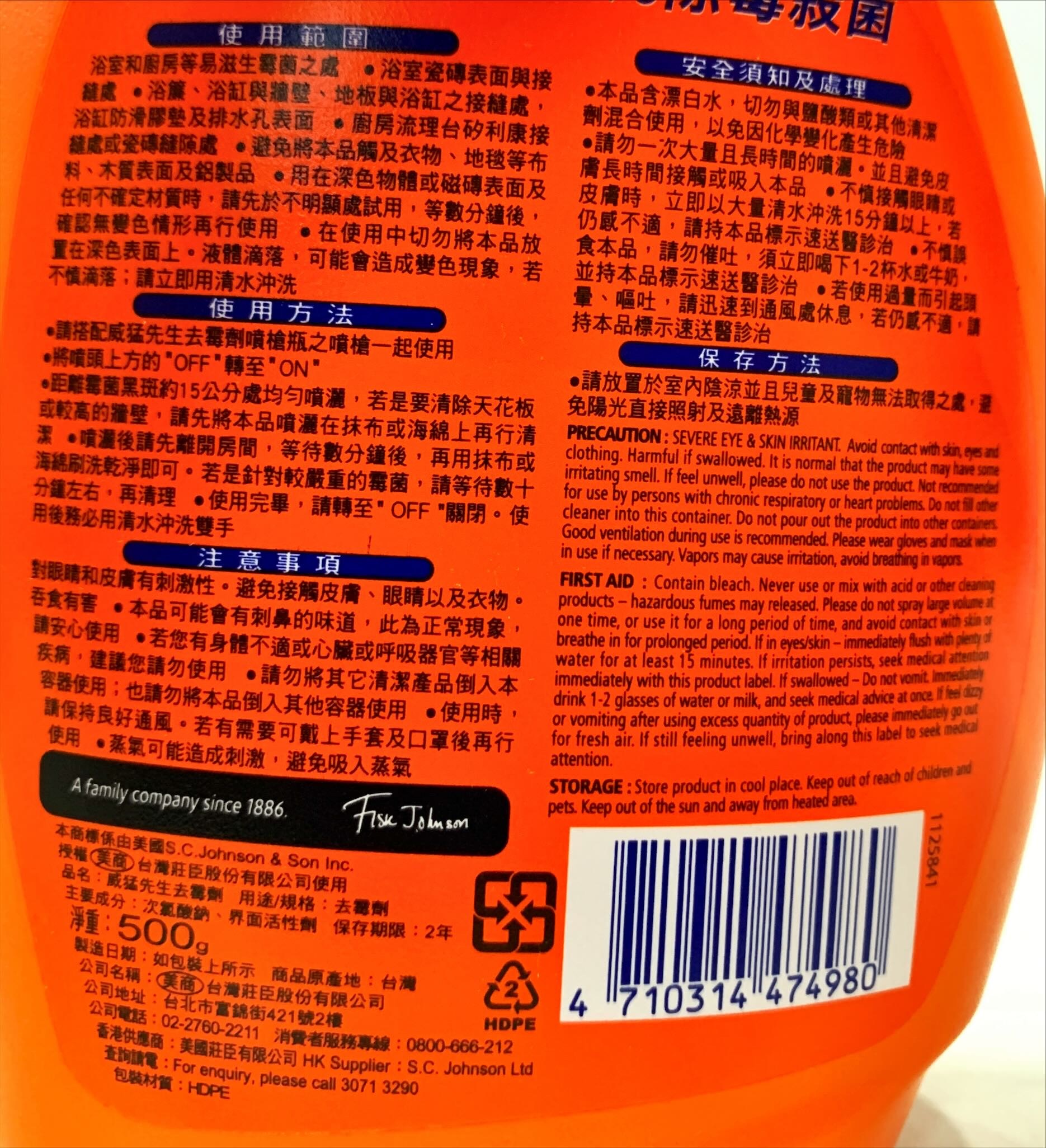 - 威猛先生去霉劑,輕鬆噴灑即可去除霉斑,讓浴室煥然一新,省時省力。