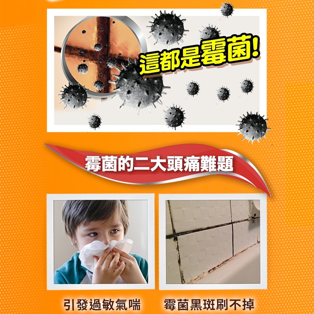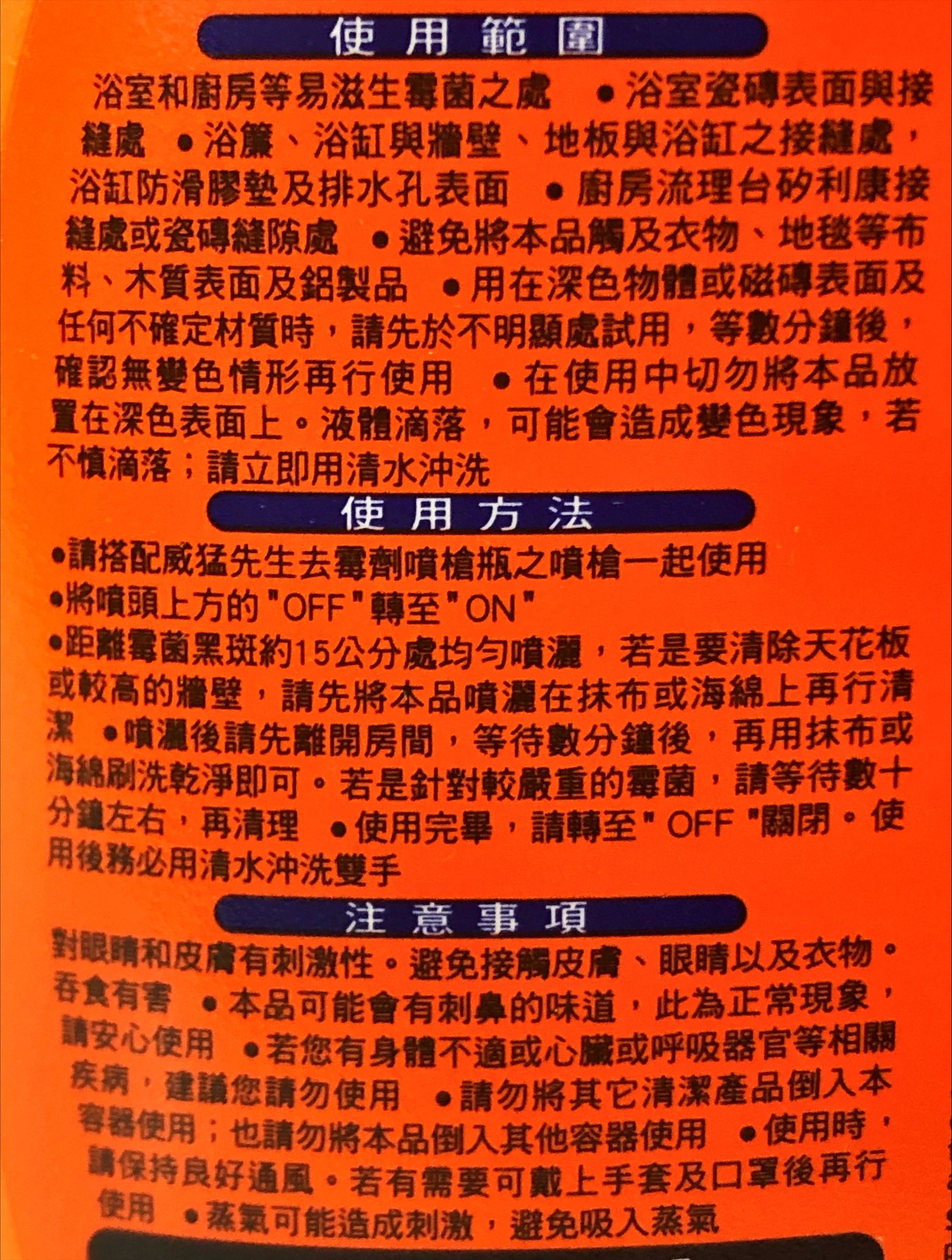 - 多用途清潔好幫手,威猛先生去霉劑適用於浴室、廚房等多處,一瓶搞定各種霉菌問題。
