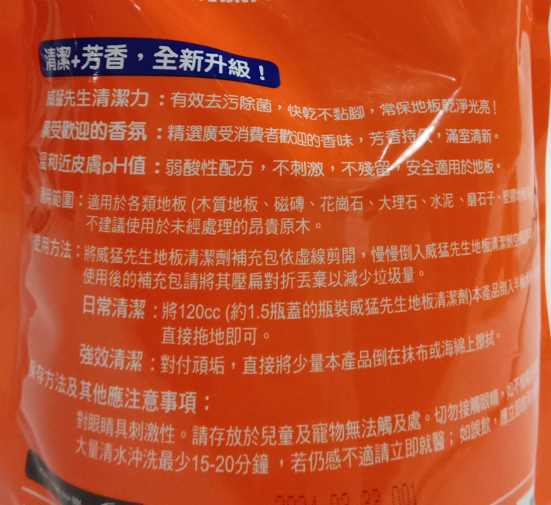 - 威猛先生地板清潔劑,讓您輕鬆打掃,地板光亮如新,散發持久迷人花香。