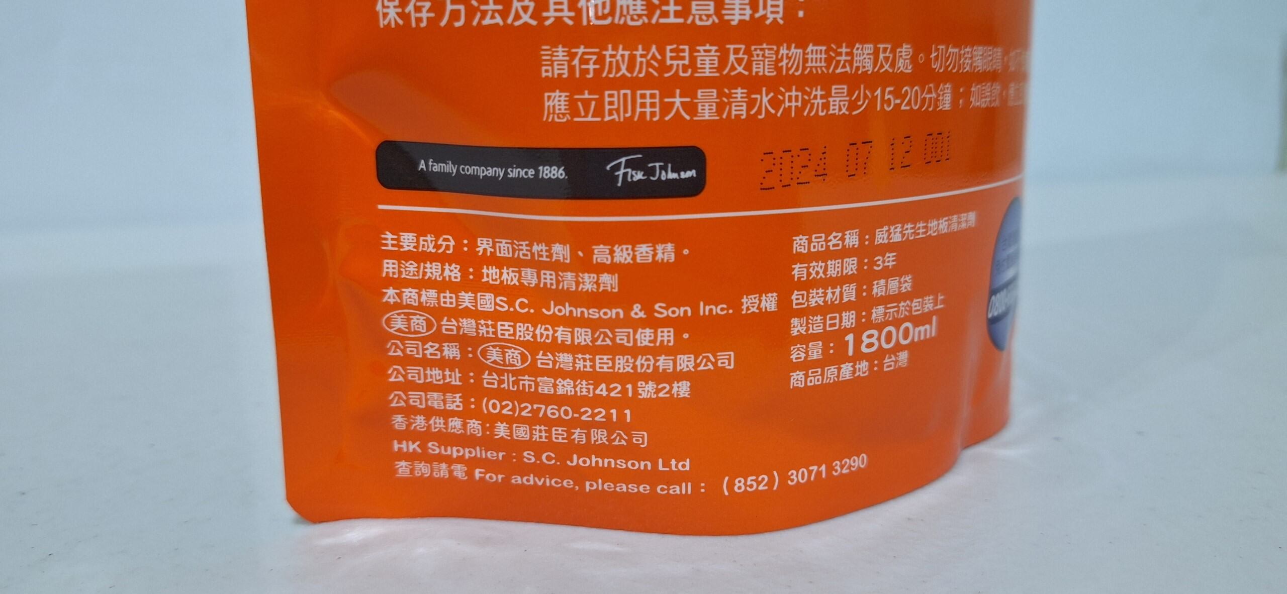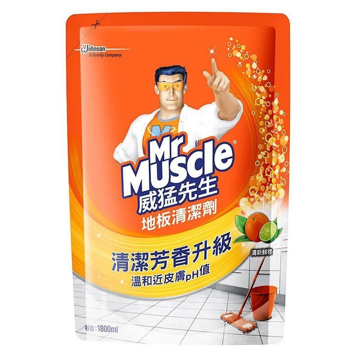威猛先生地板清潔劑補充包,清新香橙香味,讓您的地板煥然一新!液態配方能有效去除地板上的污垢和污漬,讓地板恢復光亮潔淨。溫和的pH值,不傷地板表面,使用更安心。清新香橙香味,清潔同時帶來愉悅的香氛體驗,讓居家環境更加舒適。1800ml大容量補充包,經濟實惠,適用於各種地板材質,輕鬆打造潔淨、清新的居家空間。