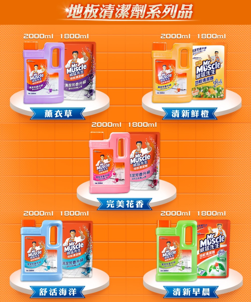 - 威猛先生地板清潔劑,讓您輕鬆打掃,地板煥然一新,散發清新香橙氣息。