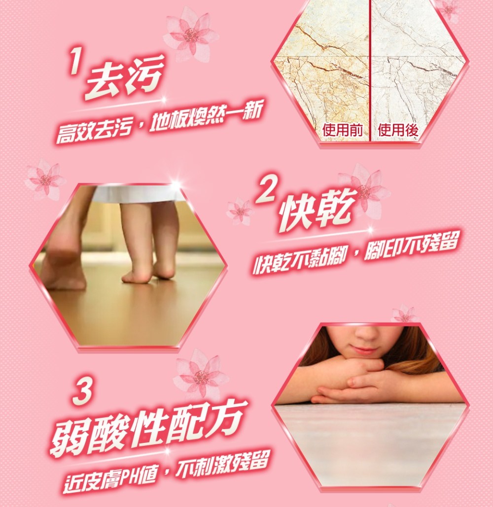 - 溫和親膚pH值,使用後不黏膩,讓您赤腳也能自在行走,享受舒適的居家生活。