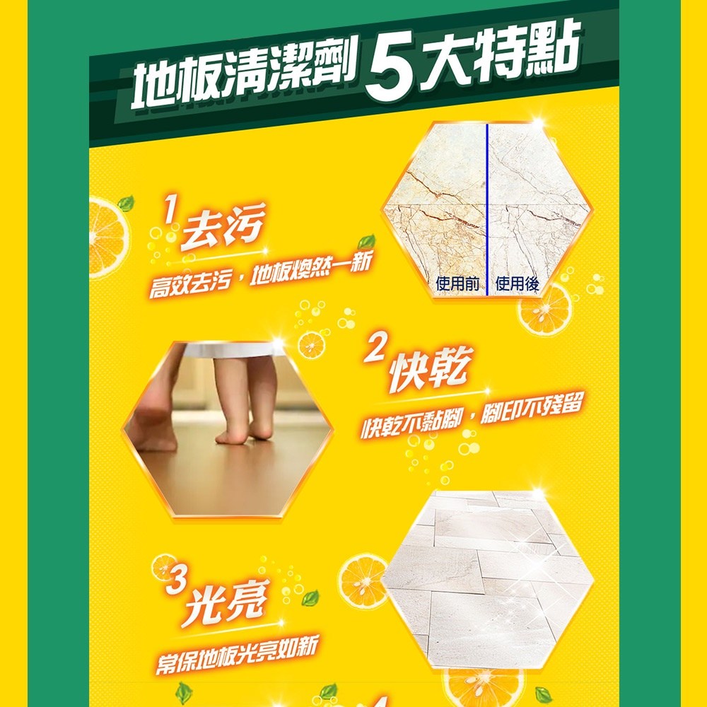 - - 快乾配方,清潔後地板迅速乾燥,不留水痕,避免滑倒危險。